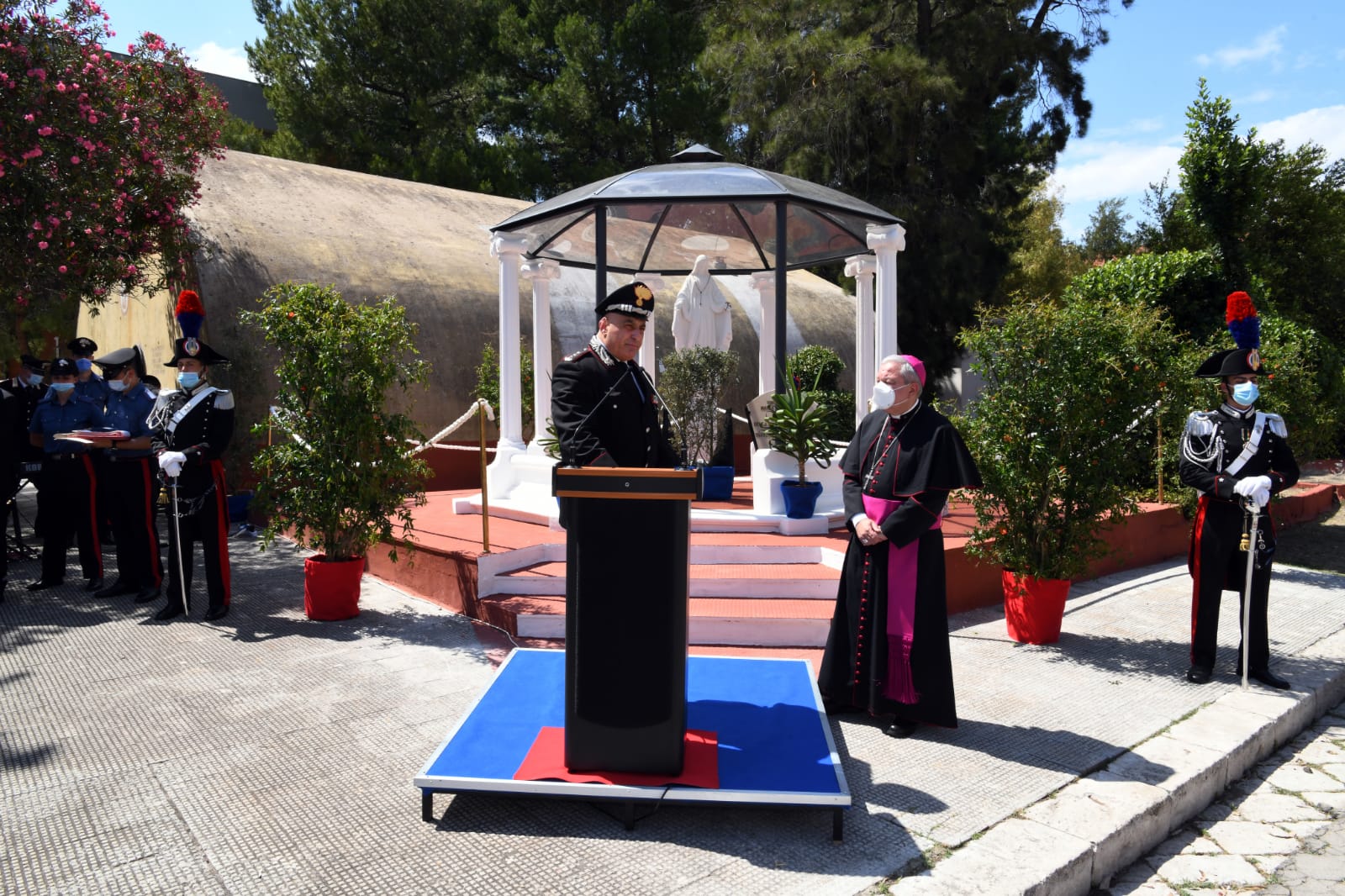 Mons. Marcianò si è recato presso l’edicola della Vergine Maria, qui è stato accolto dall’intera comunità militare schierata, nel rispetto delle norme sul distanziamento sociale e sulla lotta alla diffusione pandemica, per ascoltare la parola dell’Ordinario Militare e partecipare alla benedizione della effige della Virgo Fidelis restaurata dal personale del Minuto Mantenimento della Scuola.