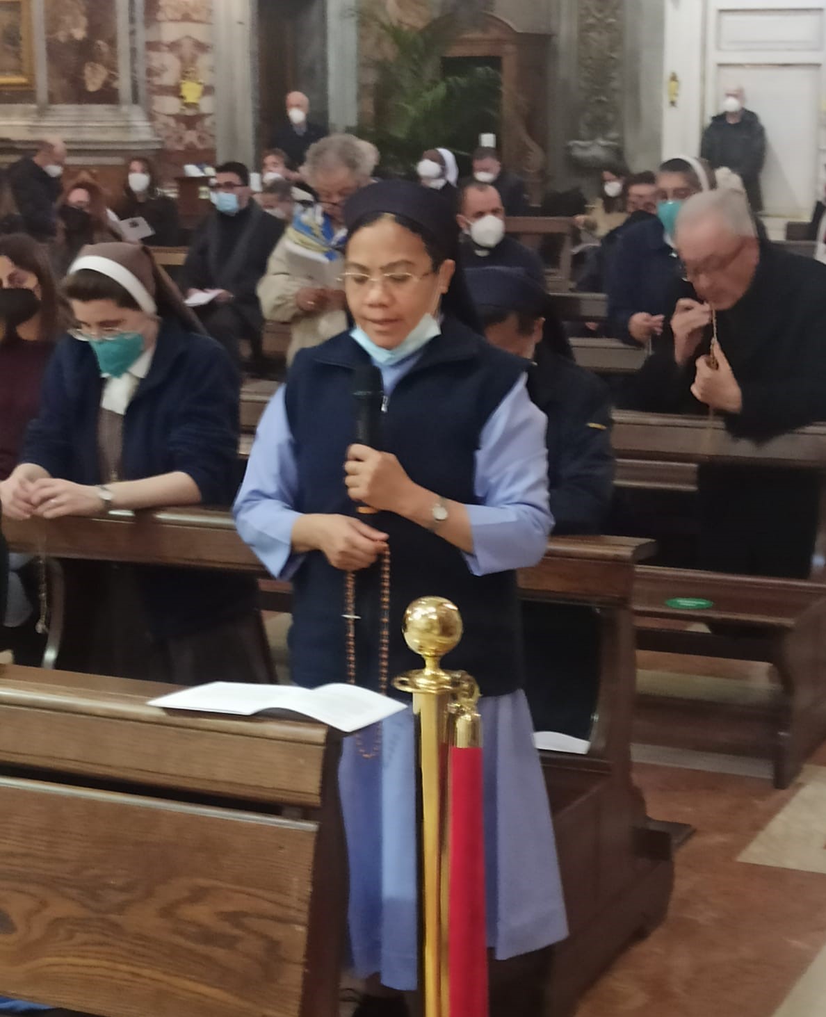 (26-03-2022) L’Ordinario militare per l’Italia, Santo Marcianò, ha presieduto ieri sera, nella chiesa di Santa Caterina a Magnanapoli, la recita del rosario per la pace, con testi di san Giovanni XXIII, patrono dell’esercito, e di papa Francesco. (in allegato il sussidio liturgico). Prima dell’atto di consacrazione e affidamento al Cuore Immacolato di Maria della Russia e dell’Ucraina, ha tenuto una breve riflessione mettendo in evidenza “il bisogno di gridare, di implorare dal Signore, per intercessione del cuore immacolato di Maria, il dono della pace”.
