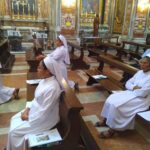 (15-09-2022) “Contagiarsi d’amore e di gioia ed essere testimoni dell’Amore di Dio che ci mostra il Suo Amore dalla Croce”. E’ il messaggio del rettore di Santa Caterina a Magnanapoli, don Pasquale Madeo, offerto nella meditazione di ieri sera nell’ambito della Adorazione Eucaristica per la Pace in Ucraina. Vi hanno preso parte le religiose che prestano il loro servizio per l’Ordinariato, una rappresentanza del personale e, provvidenzialmente, un gruppo di Allievi Ufficiali dell’Accademia di Modena impegnati nei campi addestrativi. Essi, dopo le visite istituzionali previste negli enti della Capitale, hanno fatto sosta nella Chiesa principale dell’Ordinariato, casa di ogni militare. Si è trattato, come aveva ribadito nell’annuncio del momento di preghiera l’arcivescovo Santo Marcianò, di un bel “gesto comunitario di solidarietà con l’Ucraina in questo momento difficile per tutta l’Europa”.