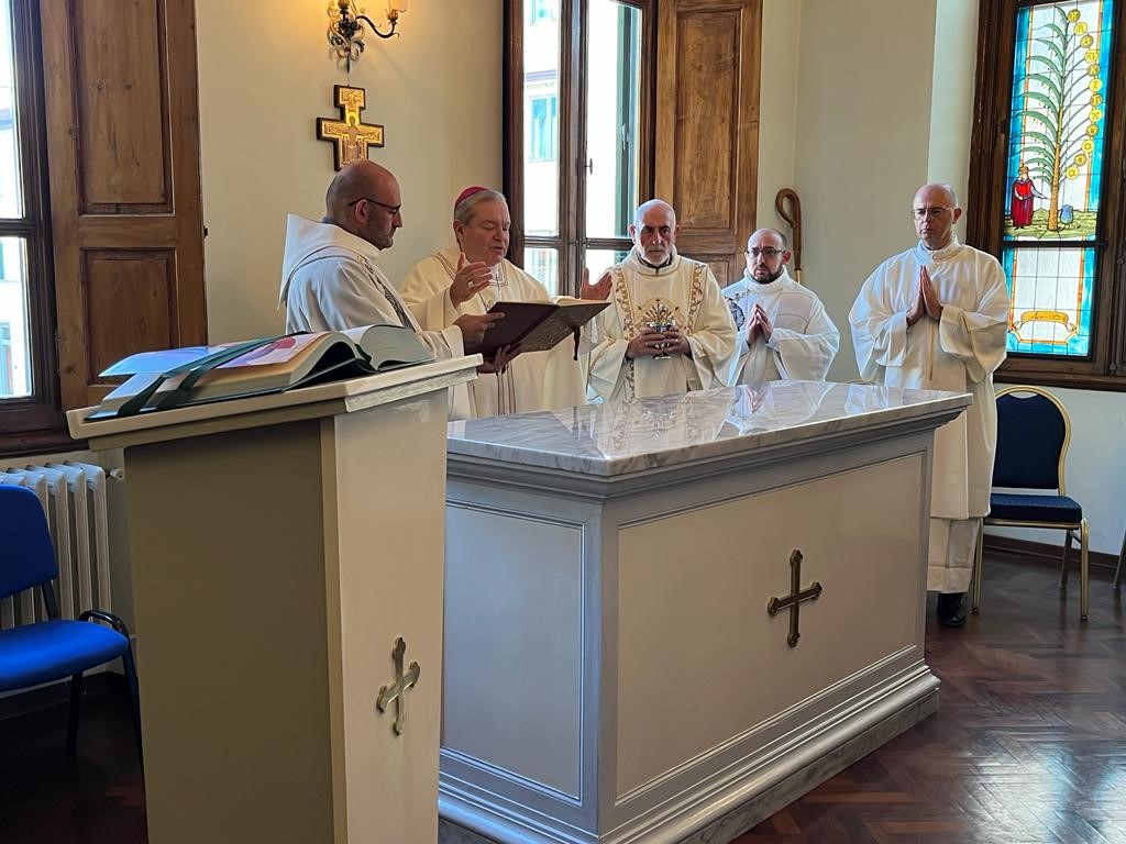 (08-11-2022) Sua Eccellenza Reverendissima Monsignor Santo Marcianò, Ordinario Militare per l’Italia, ha benedetto ieri il ristrutturato altare della cappella dello Stabilimento Chimico Farmaceutico Militare (SCFM) di Firenze, intitolato a San Camillo de Lellis, patrono della Sanità militare. Il luogo di culto risale al 1950.