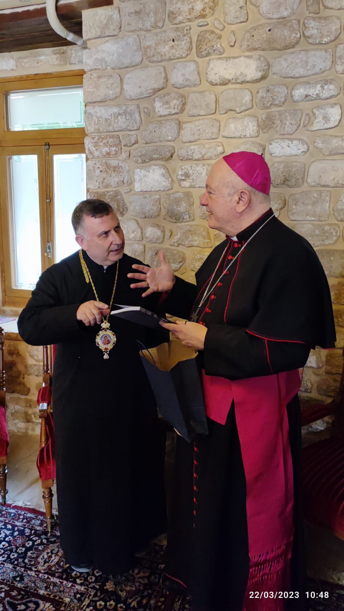 (23-03-2023) Si è conclusa ieri la visita dell’Arcivescovo Metropolita Primate di Salerno-Campagna-Acerno, S.E.R. Mons. Andrea BELLANDI, nel Libano del Sud, ove opera il Contingente Italiano nella missione di supporto alla pace UNIFIL, sotto egida ONU. Mons. Bellandi, accompagnato dal Decano della XII Zona Pastorale Interforze “Campania-Basilicata” dell’Ordinariato Militare per l’Italia, Don Claudio MANCUSI e da Don Marco RUSSO, Direttore dell’Associazione “Salerno Carità”, ha avuto modo di incontrare le autorità religiose, civili e militari del Sud del Libano in un meeting tenuto presso la sede dell’Arcieparca Maronita di Tiro: presenti l’Arcieparca Maronita, S.E. Mons. Charbel ABDALLAH, il Metropolita Greco-Cattolico Melkita, S.E. Mons. Skandar GIORJ, il rappresentante della Chiesa Ortodossa, Rev.do Nicolas BASSIL, il Console Onorario d’Italia in Tiro, S.E. Ahmad SEKLAOUI, il Prefetto del Distretto di Tiro, S.E. Mohammad JAFFAL, il Sindaco di Tiro, Mr. Hassan DBOUK, il Cappellano Militare del Contingente Italiano, Frà Miki MANGIALARDI ed i rappresentanti della Caritas Internationalis Lebanon e delle Associazioni Umanitarie.