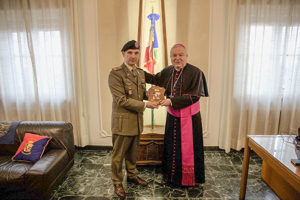 (26-01-2024) L’Ordinario Militare per l’Italia, S. E. Monsignor Santo Marcianò, si è recato presso la caserma “Forgiarini” di Tauriano (Pordenone), sede del 32° reggimento carri, per incontrare il personale del reparto. Accolto all’arrivo dal Comandante della 132^ Brigata corazzata “Ariete”, Gen. B. Marco Longo e dal Comandante del 32° reggimento carri, Col. Federico Maddaluno, l’Alto Prelato ha brevemente visitato l’infrastruttura militare e si è intrattenuto con i carristi dell’unità rivolgendo loro un sentito ringraziamento per l’accoglienza ricevuta ed esprimendo apprezzamento per l’impegno e la passione quotidianamente dimostrata nell’assolvimento dei compiti istituzionali.