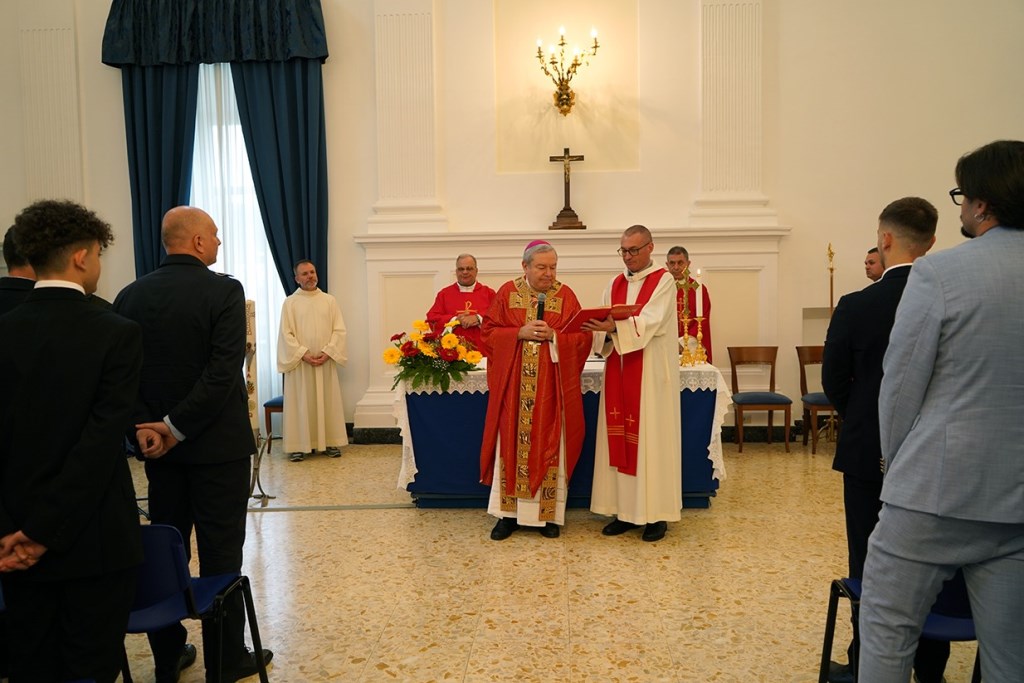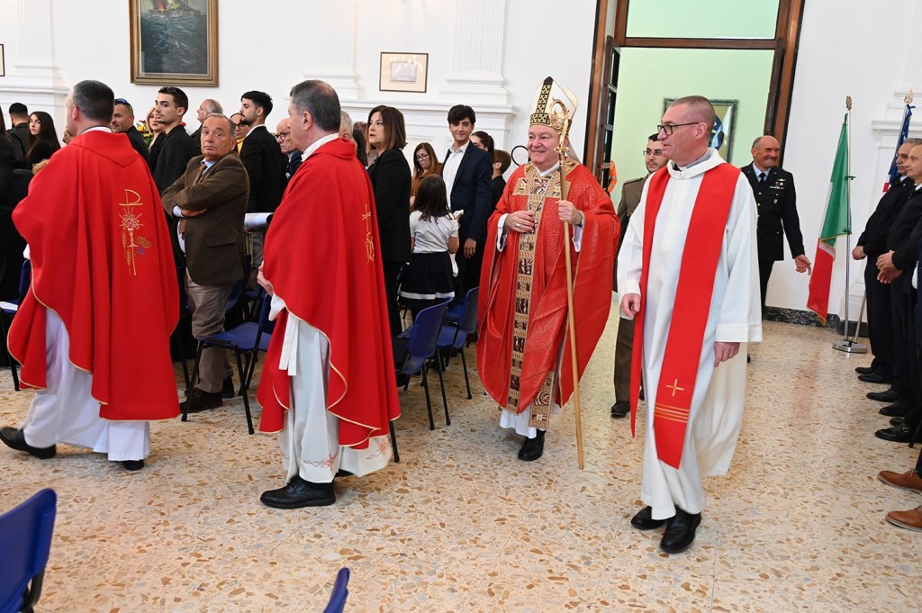 Sua Eccellenza si è poi recato all’Aeroporto di Capodichino presso lo storico “Salone degli Aviatori” del Comando dell’Aeroporto, dove si è svolta un’emozionante cerimonia che ha presieduto assistito dal Segretario Don Santo Battaglia e dai Cappellani Militari Don Emilio Di Muccio, Don Alessandro Arnone e Don Francesco Marotta. Ha amministrato il Sacramento della Confermazione a ventiquattro giovani figli del personale della Base militare di Capodichino.