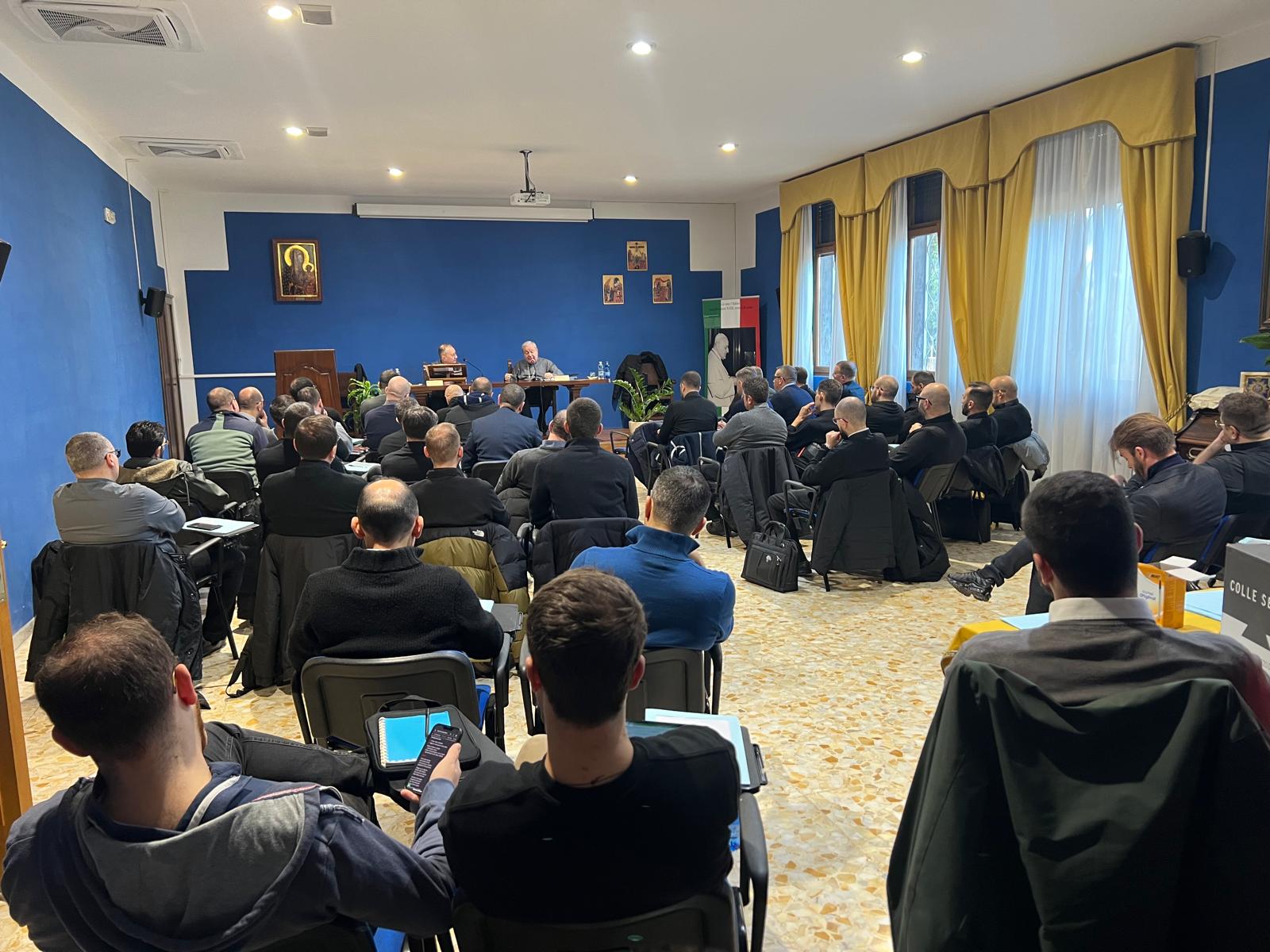 (02-12-2024) Giovedì 28 Novembre e Venerdì 29 Novembre l’Ordinario Militare per l’Italia, Mons. Santo Marcianò ha incontrato il gruppo dei preti giovani dell’Ordinariato Militare. Il primo giorno in corrispondenza della Scuola di Preghiera, presso il Santuario della Madonna del Divino Amore in Roma. Alla Scuola di preghiera hanno partecipato centinaia di giovani militari e l’Arcivescovo ha presentato la figura del Beato Carlo Acutis, il quale durante il giubileo del 2025 sarà canonizzato. I giovani militari si sono mostrati visibilmente colpiti dalla figura del giovane Carlo, anche in considerazione delle riflessioni di Sua Eccellenza sulla santità e sul fatto che questa chiamata è comune e sempre valida per tutti, a tutte le età e in tutti i contesti. A questo momento di catechesi ha fatto seguito l’adorazione eucaristica e poi un momento di condivisione fraterna. Il gruppo dei preti giovani il giorno successivo si è riunito nuovamente presso la Scuola Allievi Cappellani per ascoltare l’interessante conferenza del P. Giovanni Cucci S.J. sul tema della pornografia, della sua diffusione, dei mezzi spirituali e delle terapie con cui è possibile combatterla. Il P. Cucci ha sottolineato come il problema comincia a diffondersi e a manifestarsi già dall’età di dieci anni, e come le nuove tecnologie siano spesso un veicolo pericoloso se non sapute utilizzare con maturità. A fine incontro l’Arcivescovo ha ringraziato il relatore per aver condiviso con i giovani sacerdoti le sue ricerche su questa delicata tematica. Nella celebrazione che ha fatto seguito all’incontro di formazione un adulto con la sua bambina hanno ricevuto i sacramenti dell’iniziazione cristiana. È stato un momento di vera gioia, coinvolgente e familiare. Terminata la celebrazione tutti i presenti sono rimasti a pranzo in seminario prolungando il clima di festa e condivisione. La comunità del seminario ha ben preparato ogni cosa per far vivere a tutti i convenuti un momento di reale fraternità sacerdotale.