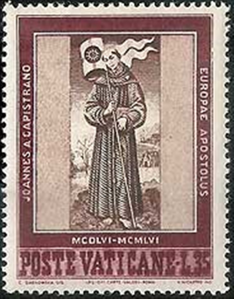 Si allega il testo del libro Joannes a Capistrano – Europae Apostolus e l’annullo filatelico.