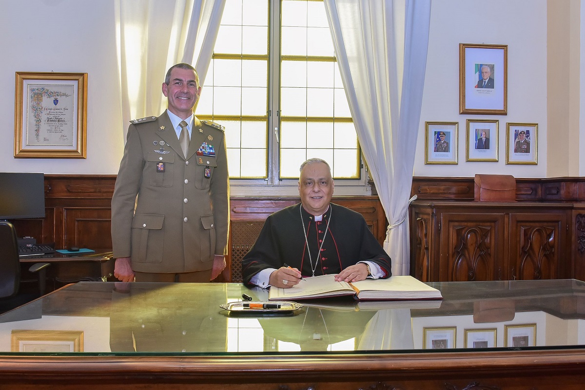 (15-10-2025) Nei giorni scorsi S.E. Reverendissima Gian Franco Saba, Arcivescovo Ordinario Militare per l’Italia, ha fatto visita al Comando per la Formazione, Specializzazione e Dottrina dell’Esercito dove è stato ricevuto dal Comandante, Generale di Corpo d’Armata Antonello Vespaziani, e dal Comandante della Scuola Ufficiali dell’Esercito, Generale di Divisione Giovanni Brafa Musicoro.