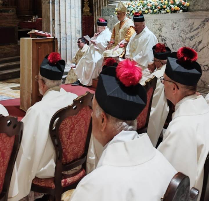 (04-11-2025) Lo scorso 31 ottobre, vigilia di tutti i Santi, l’Ordinario Militare mons. Gian Franco Saba ha presieduto una solenne celebrazione eucaristica presso la Basilica di Santa Maria ad Martyres – Pantheon. L’occasione era data dalla inaugurazione dell’anno capitolare. Hanno concelebrato l’Arciprete Rettore Monsignor Daniele Micheletti e i canonici. L’arcivescovo, che è il Prevosto del Capitolo, durante l’omelia ha sostenuto: “la schiera dei Santi di Dio ci sostiene, ci accompagna e intercede per noi, membri di una unica famiglia. Questo grande mistero è capace oggi di illuminare di luce l’orizzonte della storia dell’umanità. La moltitudine di testimoni di cui abbiamo sentito parlare nel testo biblico ci spronano perciò a non fermarci lungo la strada, ci invitano a camminare verso la meta con fiducia, consapevoli che essi stessi per primi hanno sperimentato le prove della storia e anche le gioie della storia, e che in mezzo alle alterne vicende del tempo sono andati avanti, sono piaciuti al Signore e grazie all’azione di Cristo, nostro redentore, hanno raggiunto la meta. La santità perciò – ha concluso mons. Saba – non è destinata ad alcuni ad esclude altri. Essa è l’abito bianco che tutti ci riveste, è quell’abito che nella vita quotidiana, nelle esperienze terrene, viene tessuto nelle vicende alterne del tempo”.