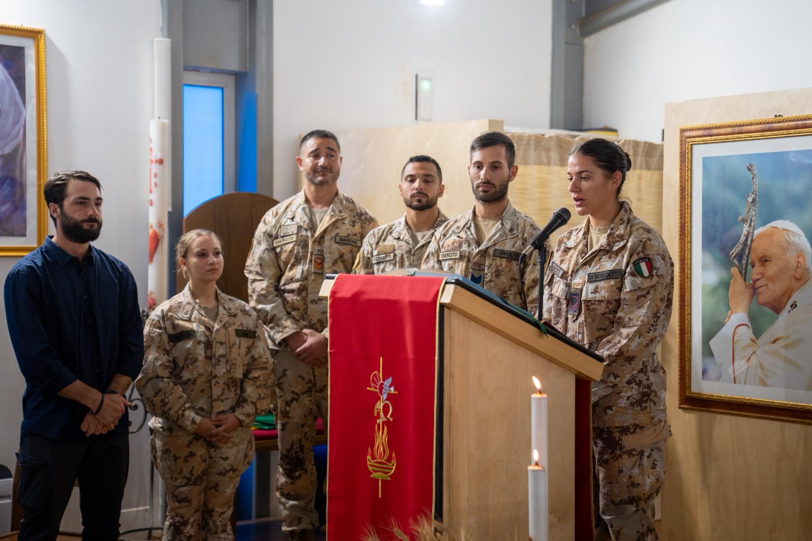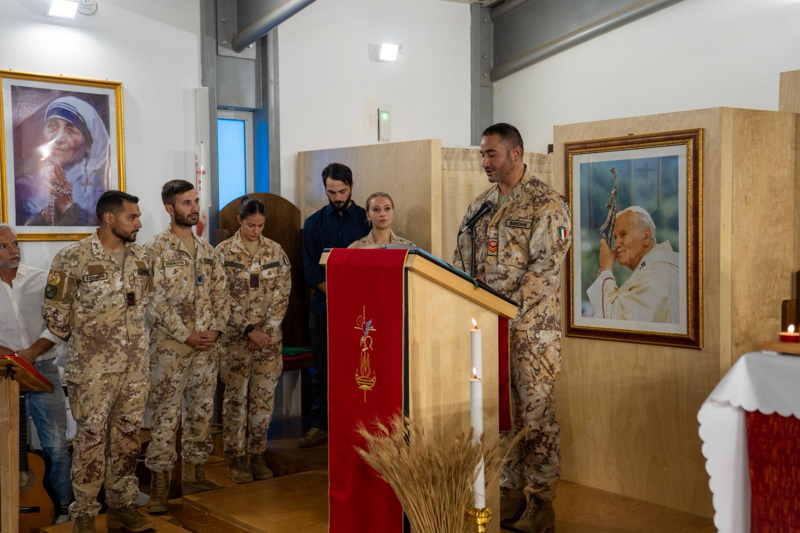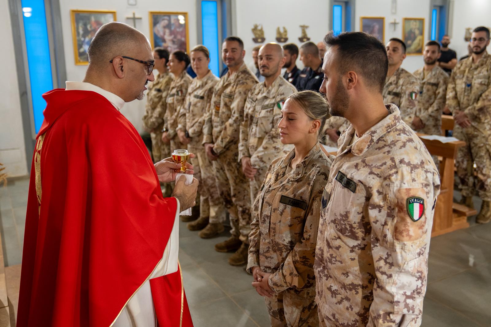 (18-11-2025) Nella Giornata Mondiale dei Poveri, avvolti da un clima fraterno, festoso e missionario, la comunità militare italiana schierata in Niger, nella missione MISIN ha celebrato domenica 16 novembre il sacramento della Confermazione di nove militari del contingente e tra di loro uno ha anche ricevuto per la prima volta il Corpo e Sangue di Cristo. Accompagnati dal cappellano militare padre Michele MANGIALARDI, che dopo un percorso catechetico ricco di ascolto, condivisione e testimonianze, ha presieduto la solenne celebrazione, ricevendone la facoltà da parte dell’Ordinario Militare per l’Italia Mons. Gian Franco SABA, resosi presente e vicino ai cresimandi e alla comunità militare attraverso parole di saluto e gratitudine, auspicando a tutti di perseverare nel dono e nell’azione dello Spirito Santo che fa nuove tutte le cose. Davvero toccante anche una breve testimonianza scritta dai cresimati che hanno vissuto la gioia del sacramento che passa dal vangelo alla vita e dalla vita al vangelo: … “Ho deciso di fare la Cresima per un motivo, ma alla fine degli incontri ne sono uscita con una consapevolezza diversa: con l’anima più leggera e il cuore arricchito. È stato bello confrontarsi e riscoprire la fede. Fra Michele è una persona che sa sempre cosa dire, ha una parola gentile per tutti e il suo modo di fare invoglia chiunque a partecipare alla sua messa, sempre con quel tocco “rock” che piace tanto a noi giovani. Abbiamo creato un bel gruppo: tante persone e personalità diverse, provenienti da tutta Italia, che ora condividono un ricordo importante. È sorprendente come, in un contesto del genere, si possa ritrovare così profondamente la propria fede.”