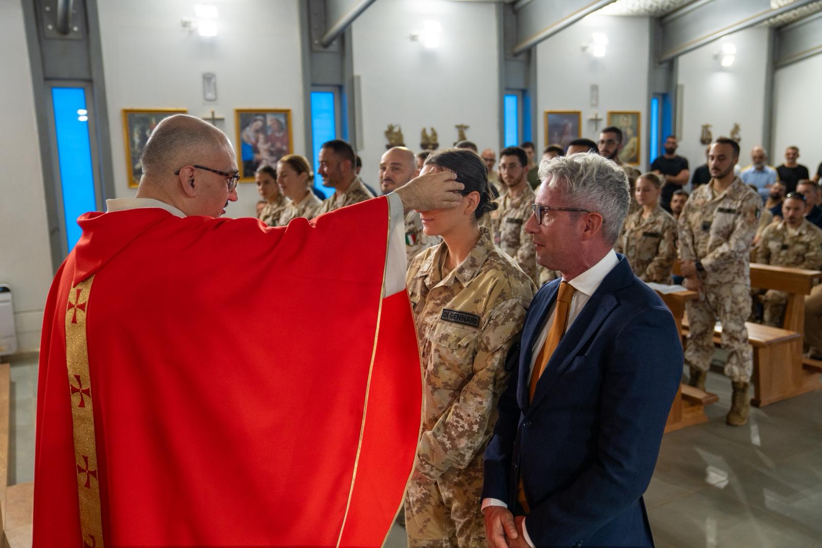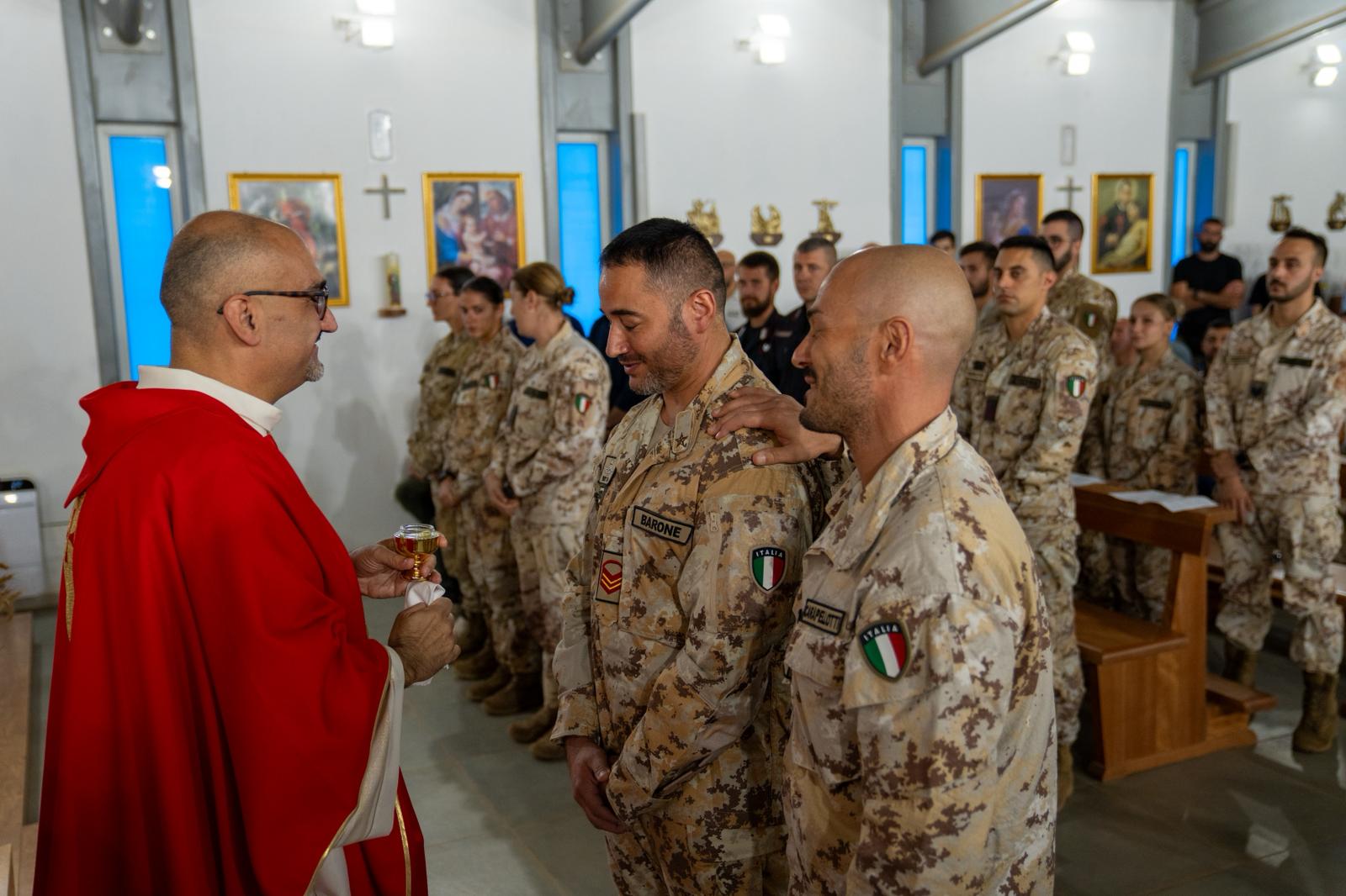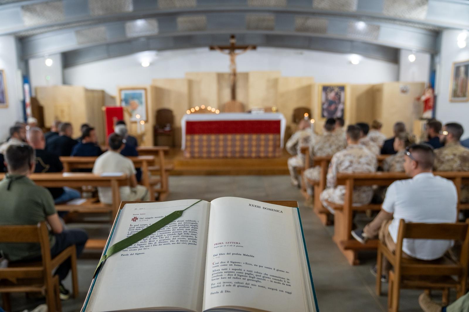 (18-11-2025) Nella Giornata Mondiale dei Poveri, avvolti da un clima fraterno, festoso e missionario, la comunità militare italiana schierata in Niger, nella missione MISIN ha celebrato domenica 16 novembre il sacramento della Confermazione di nove militari del contingente e tra di loro uno ha anche ricevuto per la prima volta il Corpo e Sangue di Cristo. Accompagnati dal cappellano militare padre Michele MANGIALARDI, che dopo un percorso catechetico ricco di ascolto, condivisione e testimonianze, ha presieduto la solenne celebrazione, ricevendone la facoltà da parte dell’Ordinario Militare per l’Italia Mons. Gian Franco SABA, resosi presente e vicino ai cresimandi e alla comunità militare attraverso parole di saluto e gratitudine, auspicando a tutti di perseverare nel dono e nell’azione dello Spirito Santo che fa nuove tutte le cose. Davvero toccante anche una breve testimonianza scritta dai cresimati che hanno vissuto la gioia del sacramento che passa dal vangelo alla vita e dalla vita al vangelo: … “Ho deciso di fare la Cresima per un motivo, ma alla fine degli incontri ne sono uscita con una consapevolezza diversa: con l’anima più leggera e il cuore arricchito. È stato bello confrontarsi e riscoprire la fede. Fra Michele è una persona che sa sempre cosa dire, ha una parola gentile per tutti e il suo modo di fare invoglia chiunque a partecipare alla sua messa, sempre con quel tocco “rock” che piace tanto a noi giovani. Abbiamo creato un bel gruppo: tante persone e personalità diverse, provenienti da tutta Italia, che ora condividono un ricordo importante. È sorprendente come, in un contesto del genere, si possa ritrovare così profondamente la propria fede.”