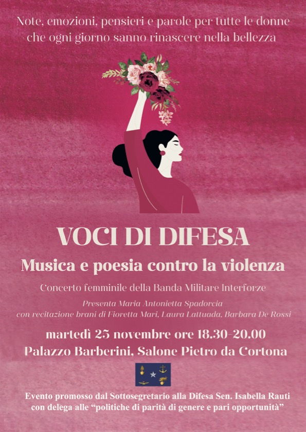 (26-11-2025) Nella serata di ieri 25.11.2025 L’Ordinario Militare ha assisto al concerto “VOCI DI DIFESA”. Musica e poesia contro la violenza”. La lodevole iniziativa promossa, dalla Sen. Isabella RAUTI Sottosegretario di Stato alla Difesa, con delega alle politiche di parità di genere e pari opportunità vuole unire poesia e musica per sensibilizzare contro la violenza sulle donne. L’Ordinario Militare, sottolineando l’importanza della giornata internazionale per l’eliminazione contro le donne, nel ribadire l’impegno comune contro ogni forma di violenza di genere sottolinea il valore della prevenzione, dell’educazione al rispetto e della solidarietà verso le vittime.