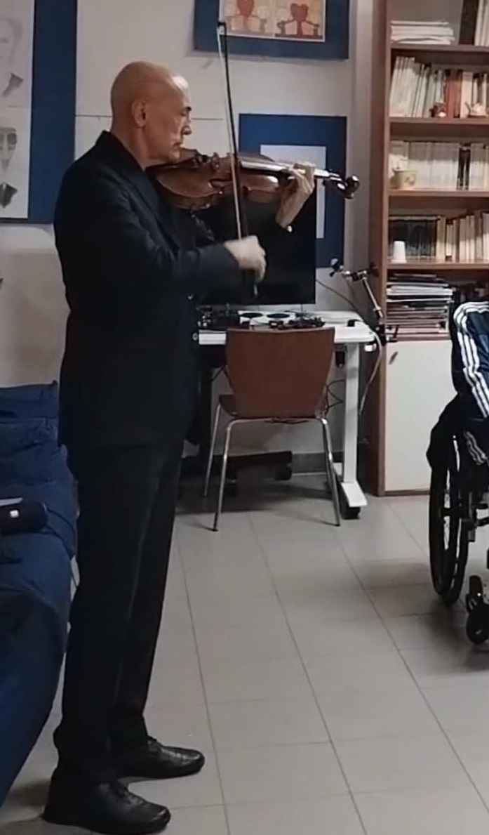 Il Maestro chinato non solo sul suo violino, ma anche sulla sofferenza di un ministro di Dio, ha testimoniato un talento e un’arte che, quando si fa carità, suscita emozioni profonde, che creano momenti di comunione tra noi e con Dio. Quella soave armonia, riempiendo il vuoto di un silenzio d’ospedale, ha elevato la preghiera unanime che sale a Dio e a Lui chiede aiuto e protezione.