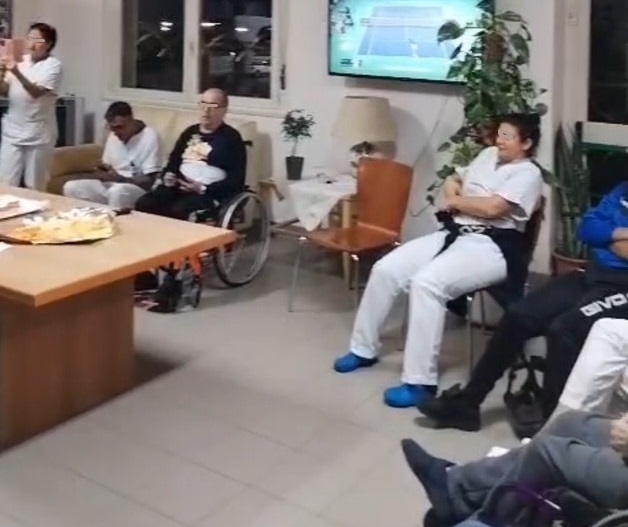 Durante la visita, si è creata l’opportunità di eseguire un brano musicale, cogliendo anche l’occasione del saluto di un ospite che veniva dimesso. Così le intense note della celebre “Ave Maria” di Franz Schubert sono risuonate nella sala, portando una carezza sonora e vibrante a tutti i pazienti. La melodia, intrisa di dolcezza malinconica e di fiducia incrollabile, si è diffusa come un balsamo; per gli amici che quotidianamente cercano il lento recupero delle proprie forze, quelle note sono state meraviglia e consolazione. Si è percepita quella sentita esecuzione come una profonda preghiera a Dio, carica di compassione.