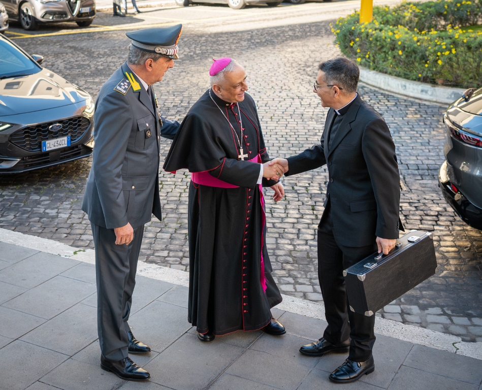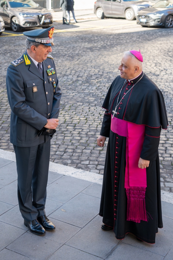 (10-12-2025) Martedì 9 dicembre 2025 è stata celebrata la S. Messa in preparazione al Natale presso il Comando Generale – Salone d’Onore della Caserma “Gen. B. Sante Laria”, presieduta dall’Ordinario Militare, S.E. Rev.ma Mons. Gian Franco Saba, e concelebrata dal Vicario Episcopale del Comando Generale, Mons. Nino Romano, e dal Segretario Particolare dell’Arcivescovo, Don Giovanni Tanca.
