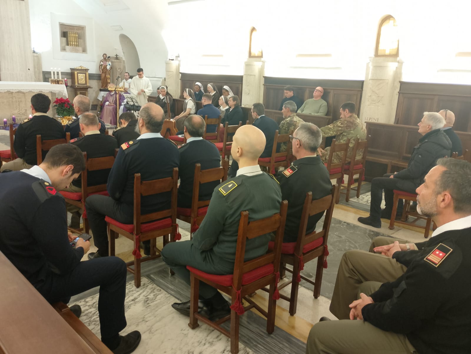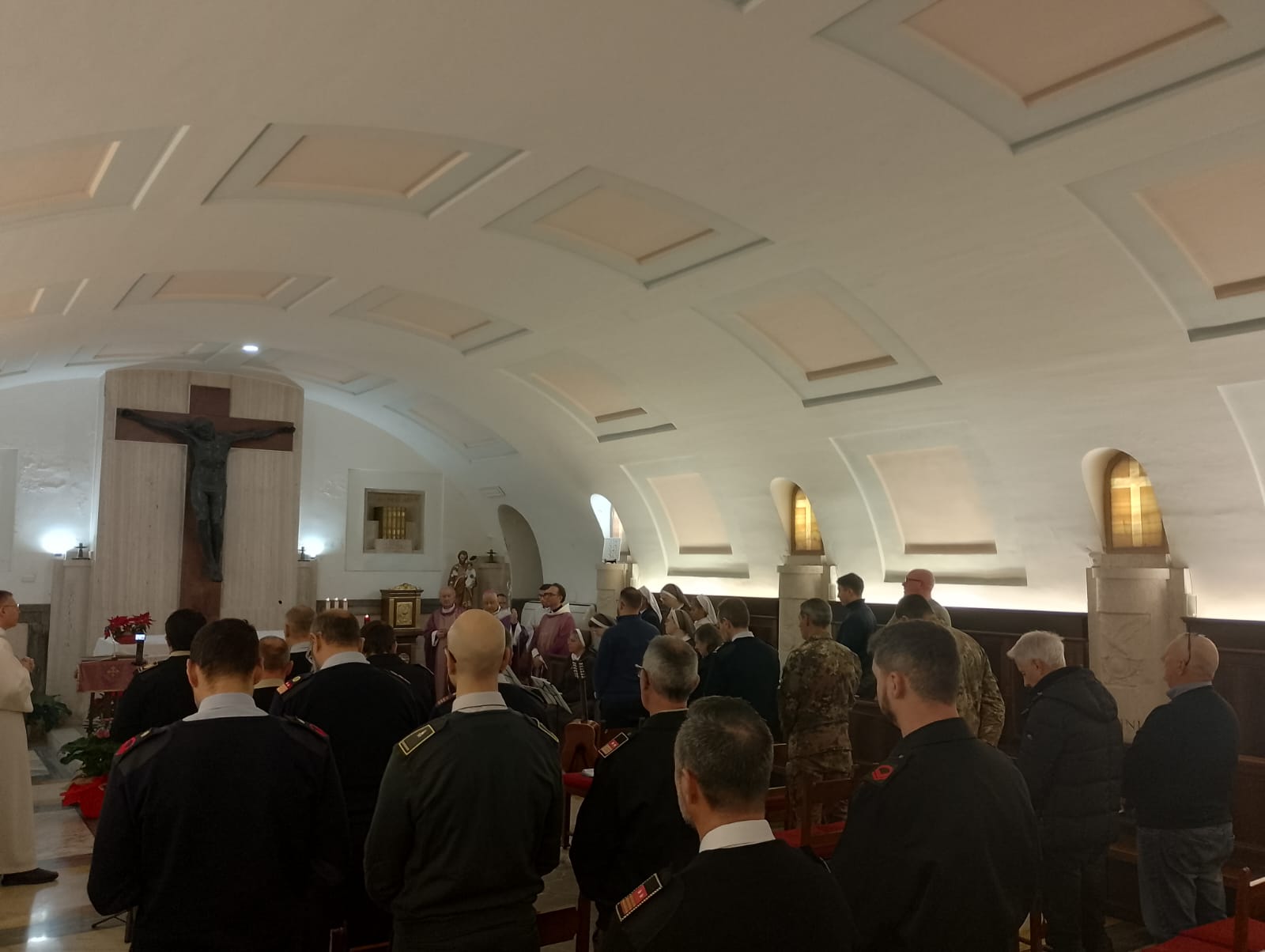 (18-12-2025) Ieri mattina 17 dicembre, durante la celebrazione Eucaristica, seguita da un momento conviviale, S.E. Mons. Gian Franco Saba ha rivolto i suoi Auguri di Natale e di inizio del nuovo anno ai collaboratori, civili e militari, che prestano servizio presso la Curia della Chiesa Castrense.