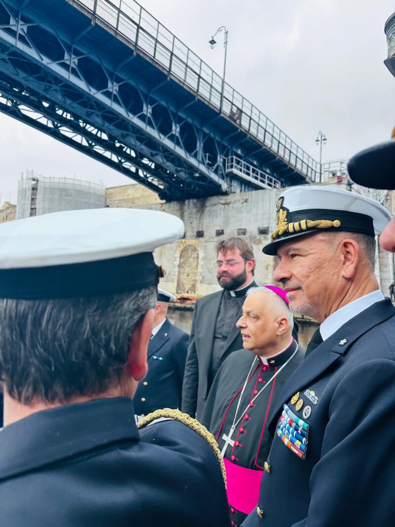 Conclusa la visita a bordo dell’unità navale, l’Ordinario Militare ha fatto rientro presso la sede dell’Ordinariato Militare a Roma, portando con sé l’esperienza di una comunità militare viva e partecipe, affidata alla cura pastorale della Chiesa e sostenuta dalla preghiera e dalla vicinanza del suo Pastore.