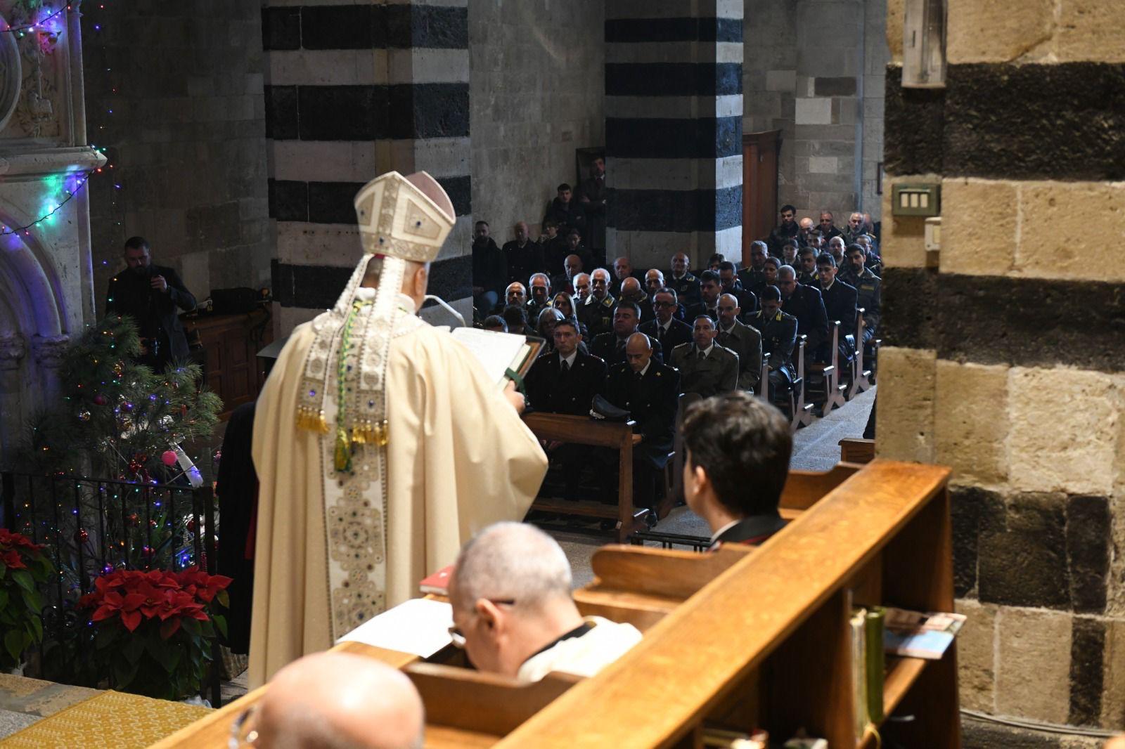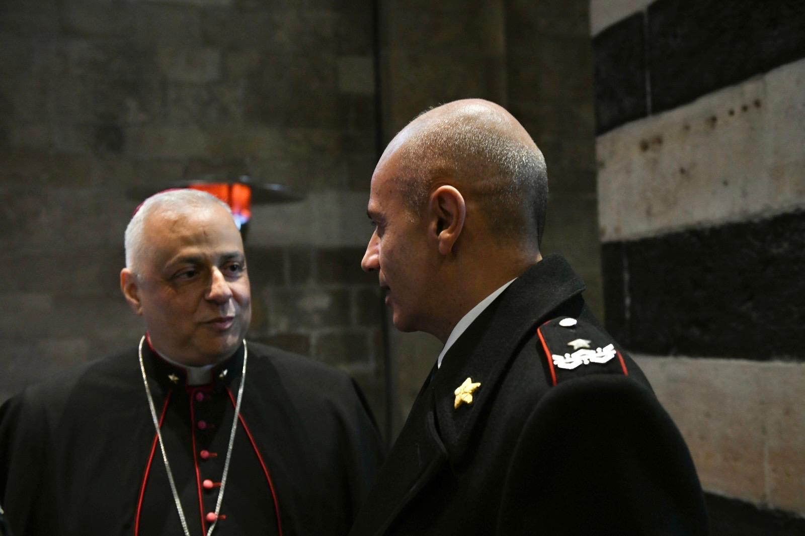 “Facciamo risuonare oggi nel nostro cuore l’invito del santo padre, papa Leone XIV, a costruire, come Chiesa, i laboratori di pace; anche noi, chiesa castrense, accogliamo quest’invito nella nostra realtà militare… dove, di fatto, ciascuno di noi opera in molteplici contesti e in delicate situazione per essere sentinelle di pace, dentro e fuori i confini nazionali…”. Così ha esordito l’Ordinario nella sua riflessione, sottolineando poi che “La pace nasce dal cuore dell’uomo, nasce dall’intelligenza del cuore… E perciò la nostra chiesa militare, che opera in ambiti e contesti antropologici diversi, dove si toccano le importanti sfide, attraverso l’impegno di tutto il popolo di Dio, insieme alla preziosa opera dei cappellani militari, promuove questi laboratori di pace. Per questo, desidero esprimere un vivo ringraziamento a tutti voi, uomini e donne che, con solenne giuramento, prestate il vostro servizio, spesso nascosto e silenzioso, ma che dona sicurezza, tranquillità, che consente di vivere le proprie giornate in condizioni di affidabilità esistenziale”. Infine, ha concluso Mons. Saba “La pace è anzitutto un dono di Dio: questo primato di Dio la chiesa castrense annuncia; la fede non cede alla violenza, se essa è autentica non cede alla contrapposizione”.