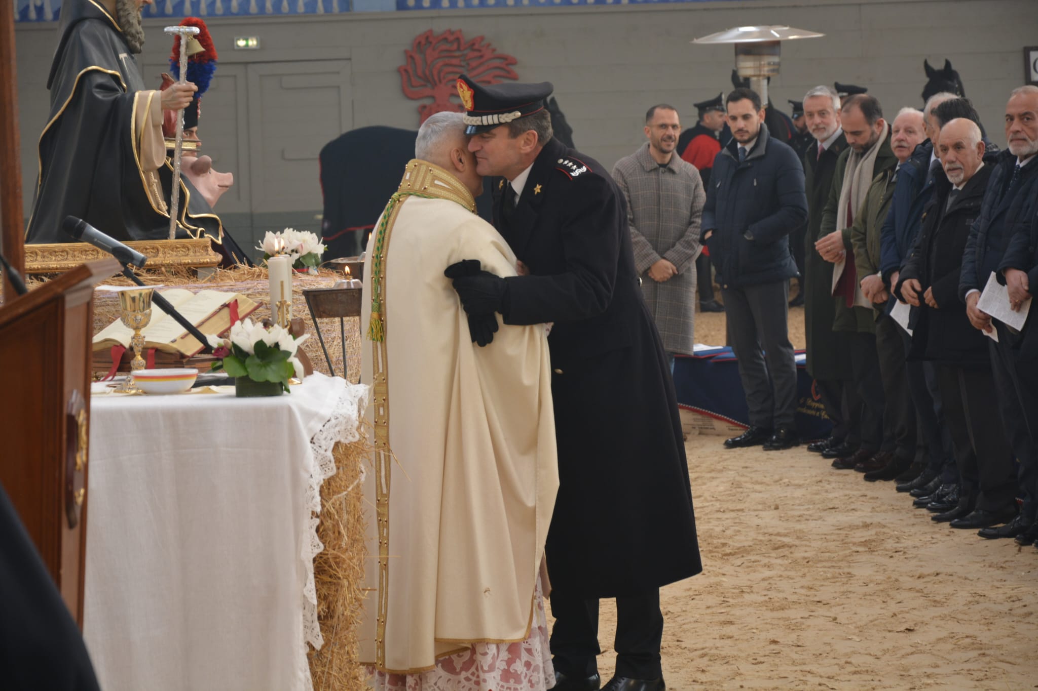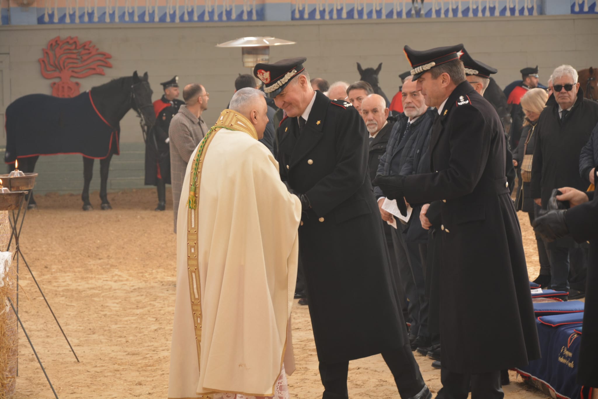 Alla celebrazione hanno preso parte, oltre al Generale C.A. Massimo Mennitti, Comandante delle Unità Mobili e specializzate “Palidoro, “al Comandante del IV Reggimento Carabinieri a Cavallo, Colonnello Alessandro Barone, e ai rappresentanti della FISE, numerosi ufficiali, la fanfara a Cavallo del Reggimento che ha animato la Liturgia, rappresentanza del personale impegnato quotidianamente nella cura degli animali, familiari e ospiti, in un clima di profonda partecipazione e sincera condivisione.