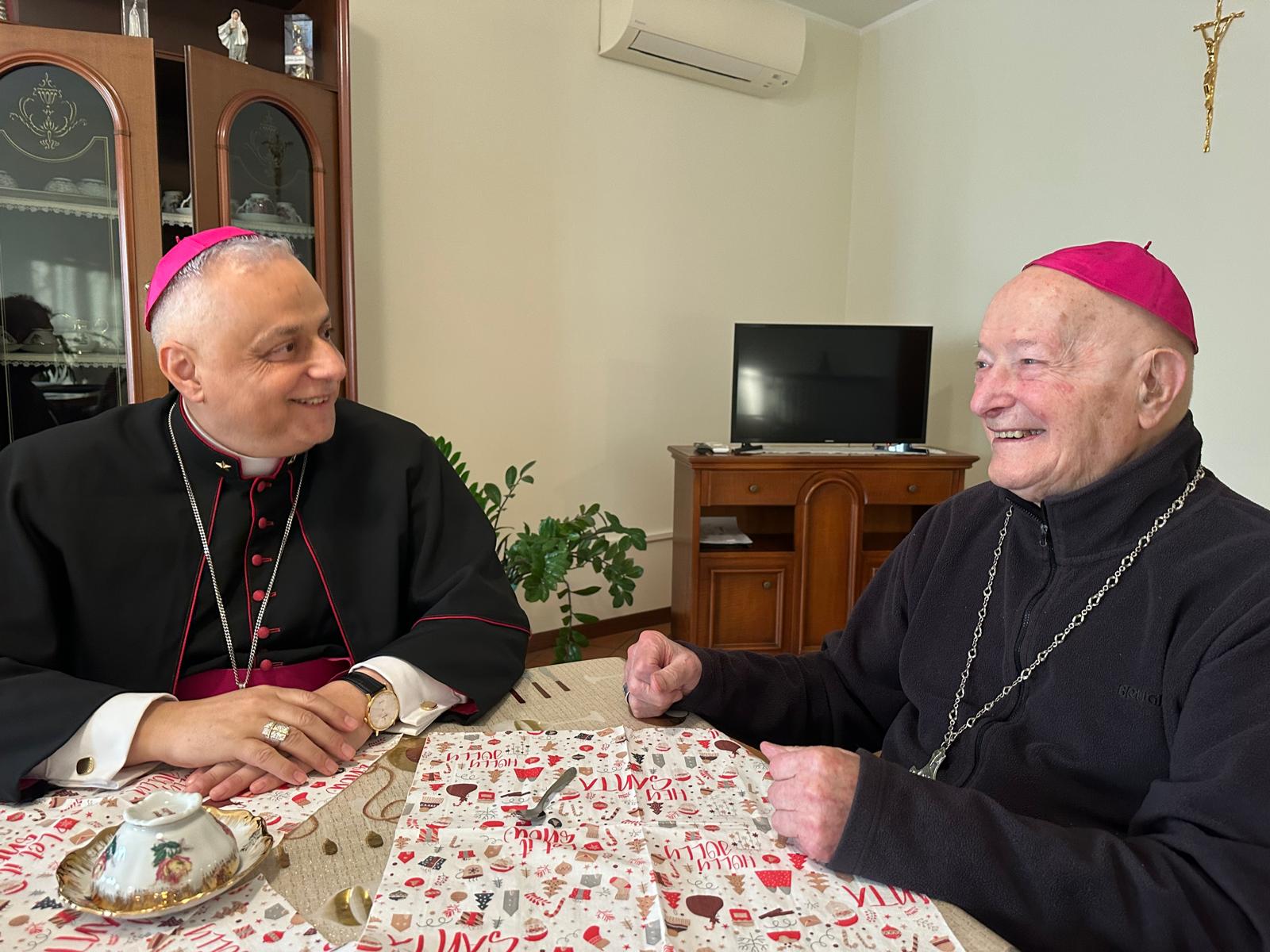 Al termine della Santa Messa si sono intrattenuti per un momento di fraterna convivialità, espressione concreta di quella carità che, anche nel tempo e nella fragilità, continua a tessere legami e a custodire la memoria viva della Chiesa. La visita assume un significato particolarmente eloquente nell’anno del Centenario dell’Ordinariato Militare per l’Italia. Cento anni di storia, di presenza pastorale, di accompagnamento spirituale agli uomini e alle donne in uniforme. Un secolo che si intreccia simbolicamente con la lunga vita di Mons. Bonicelli, testimone diretto di una stagione significativa dell’Ordinariato e della sua missione.