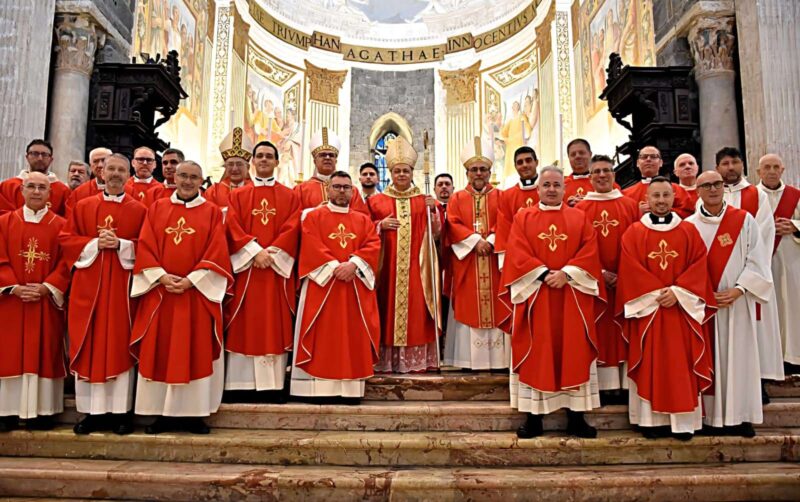 Per i presenti il messaggio di Mons. Saba è stato chiaro e diretto: la mitezza, il «sì» silenzioso, la ricerca di sostegno e la consolazione come forza pratica sono valori che parlano a chiunque si trovi a scegliere tra la via più comoda e quella più giusta; non si tratta solo di disciplina o di dovere, ma di una vocazione che nasce dalla coscienza e dalla responsabilità verso il bene comune. Al termine della Messa, l’Arcivescovo ha benedetto i presenti, ha reso omaggio alle reliquie di Sant’Agata e ha salutato singolarmente gli intervenuti alla celebrazione.