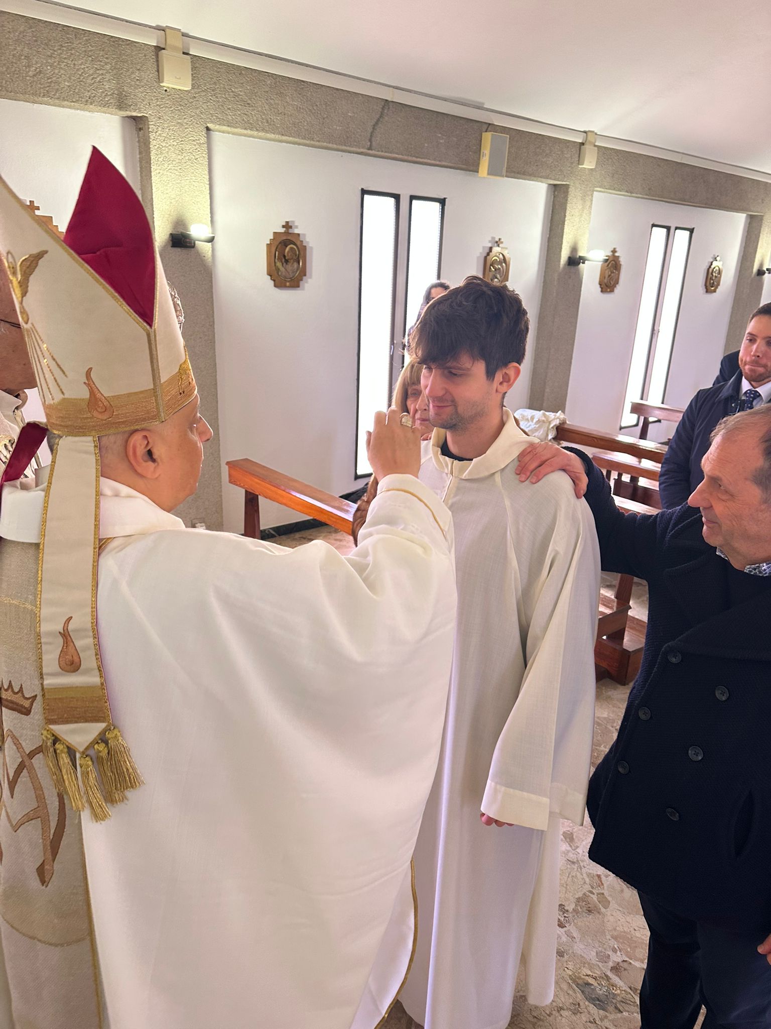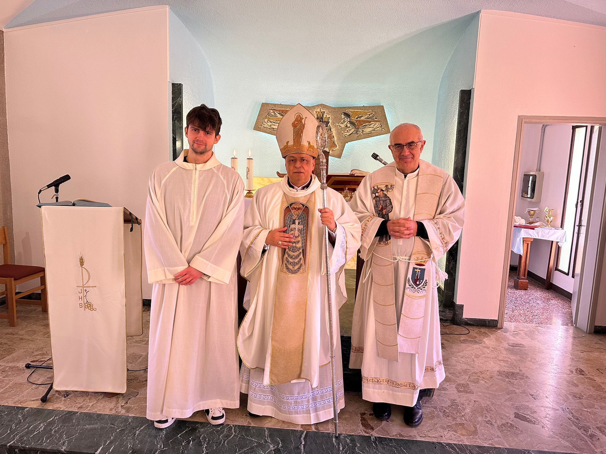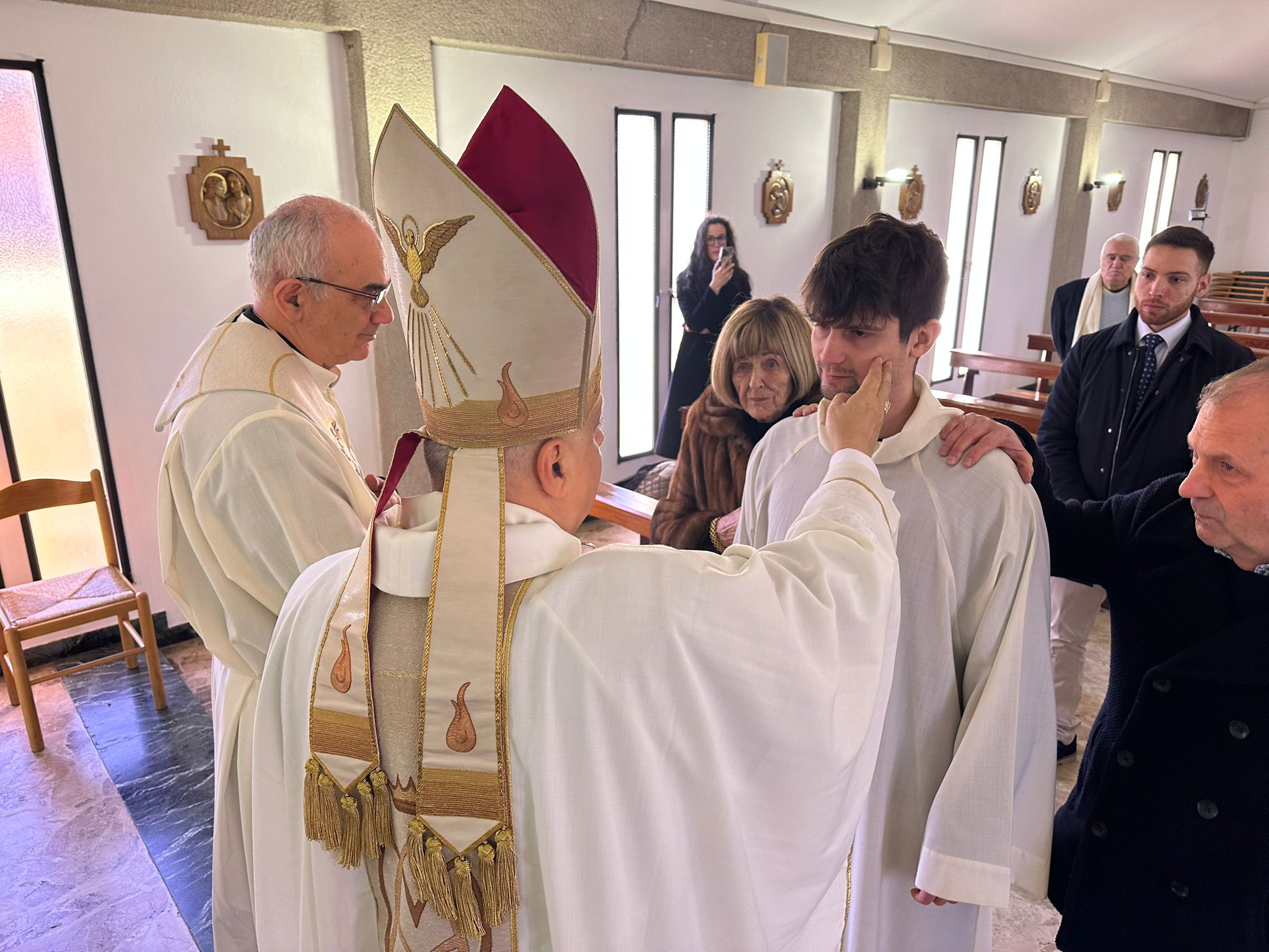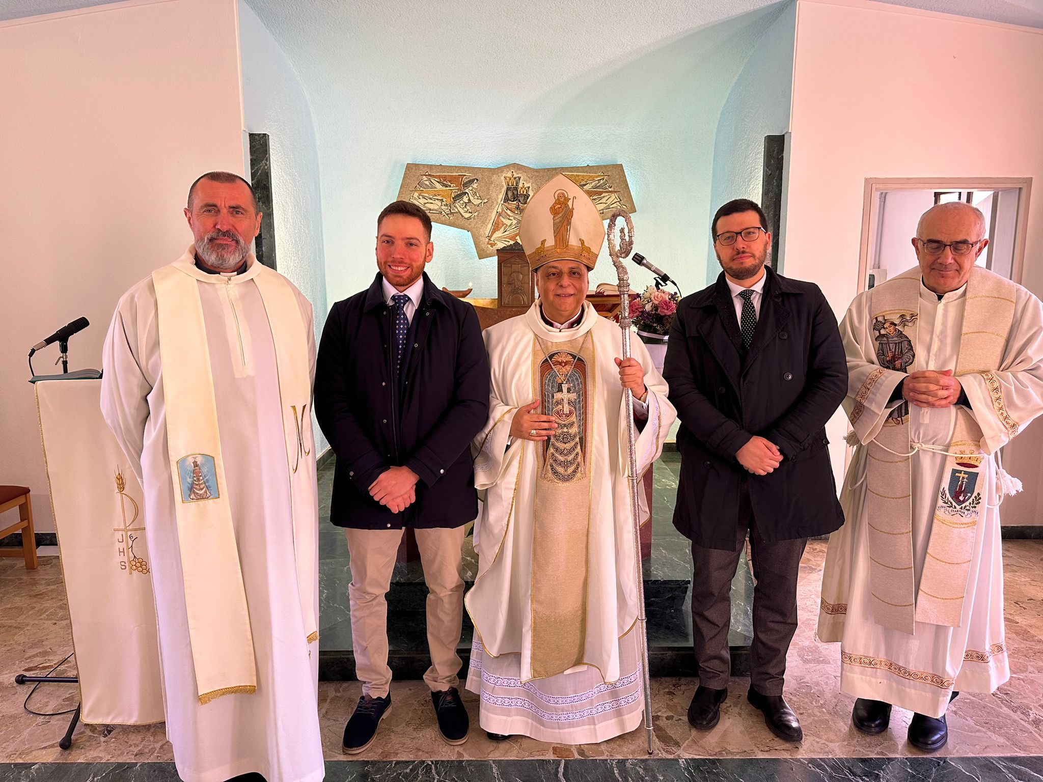 (02-02-2026) Il 1° febbraio l’Ordinario Militare, S.E. Ms. Gianfranco Saba, ha concluso la sua visita nel nord est con la celebrazione dell’iniziazione cristiana degli adulti per un giovane figlio di una dipendente civile del 2° Stormo A.M. di Rivolto (D). Luca, studente universitario ventiduenne, accompagnato dal cappellano d. Fausto Corniani e dalla madre catechista in parrocchia, ha portato a termine con molto frutto il percorso di preparazione e ora è membro attivo della chiesa. Al termine della S. Messa lui e i familiari hanno espresso il loro ringraziamento alla Chiesa Castrense per il dono ricevuto. Nella stessa celebrazione, un giovane carabiniere accompagnato dal cappellano don Albino d’Orlando, ha ricevuto il sacramento della confermazione.  Il rito si è svolto nella cappella della base logistica A.M. del 2° Stormo, rimessa a nuovo per la circostanza. La sera precedente, il Vescovo si era intrattenuto fraternamente con i cappellani della 4° zona pastorale Friuli Venezia Giulia, cenando con loro.