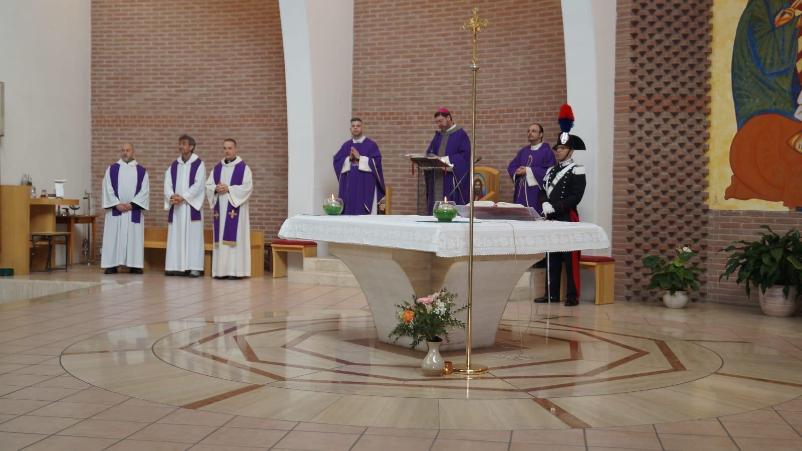 A seguire, presso la vicina chiesa del Cristo Risorto, alla presenza di personalità politiche e militari della provincia, oltre che di colleghi, molti dei quali avevano conosciuto l’App. Donato Fezzuoglio apprezzandone le qualità personali e militari, è stata concelebrata una Santa Messa in suffragio dal Vescovo, insieme a don Alberto Gildoni, fratello della M.O.V.M. Col. Valerio Gildoni, e ai due cappellani militari, don Arnaldo Ricciuto e don Giuseppe Balducci.