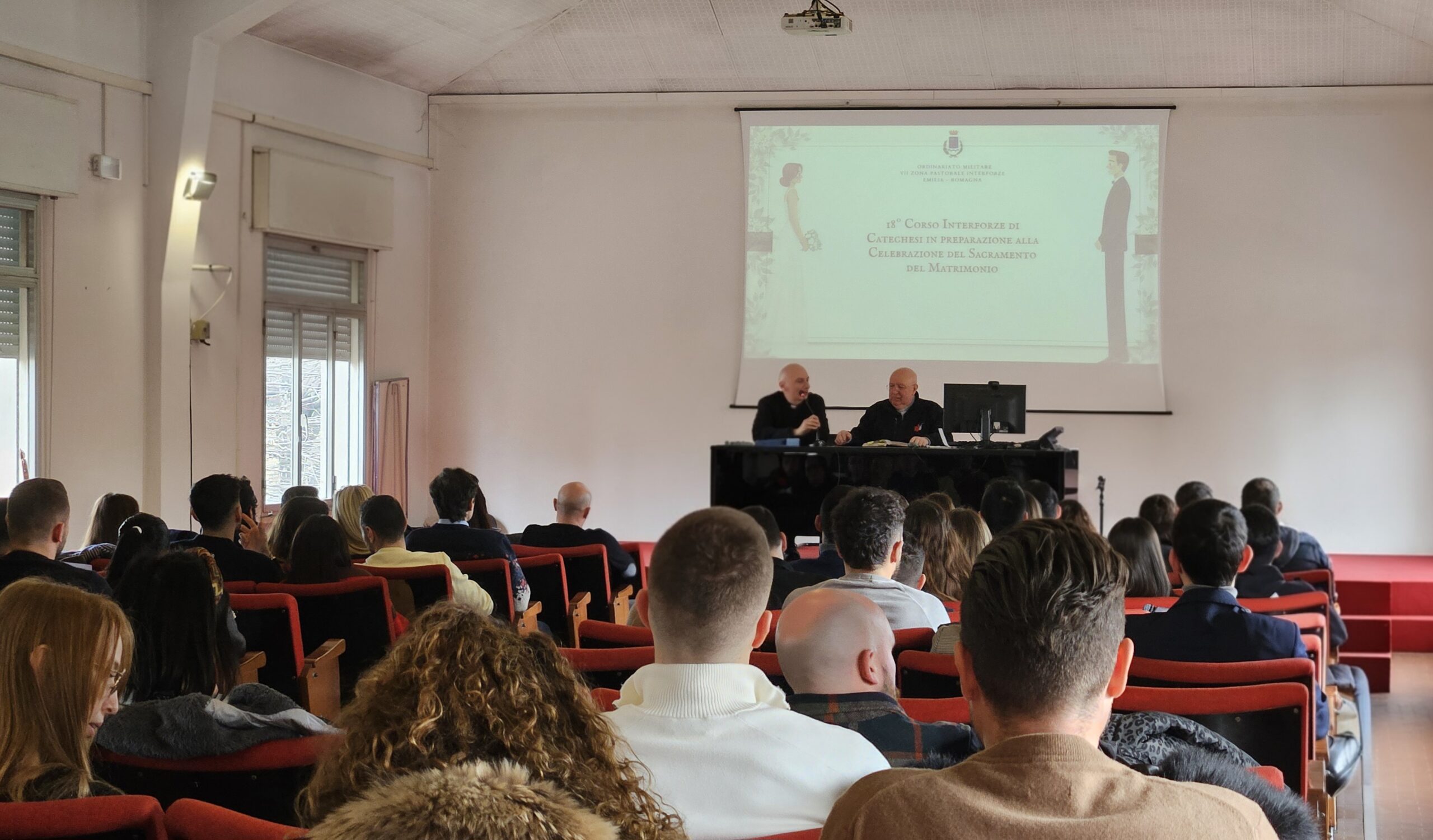 Ad aprire i lavori è stato don Luca Giuliani, Cappellano dei Carabinieri, che ha introdotto il corso presentando il matrimonio come vocazione e fondamento della vita familiare e sociale. È seguito l’intervento di don Marco Giordano, Cappellano della Guardia di Finanza, che ha guidato i presenti nella comprensione del mistero nuziale nella Sacra Scrittura, mostrando le radici bibliche dell’amore sponsale.