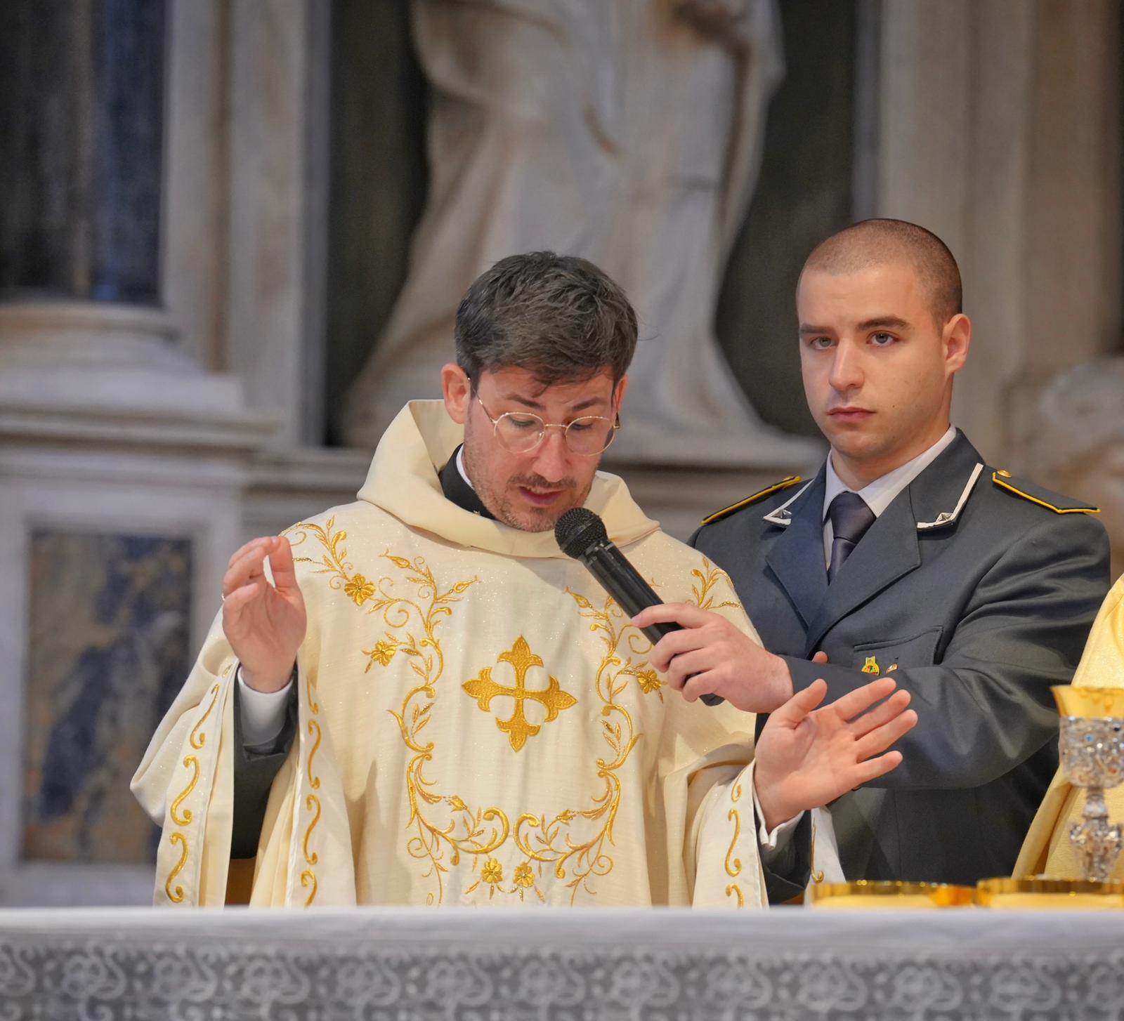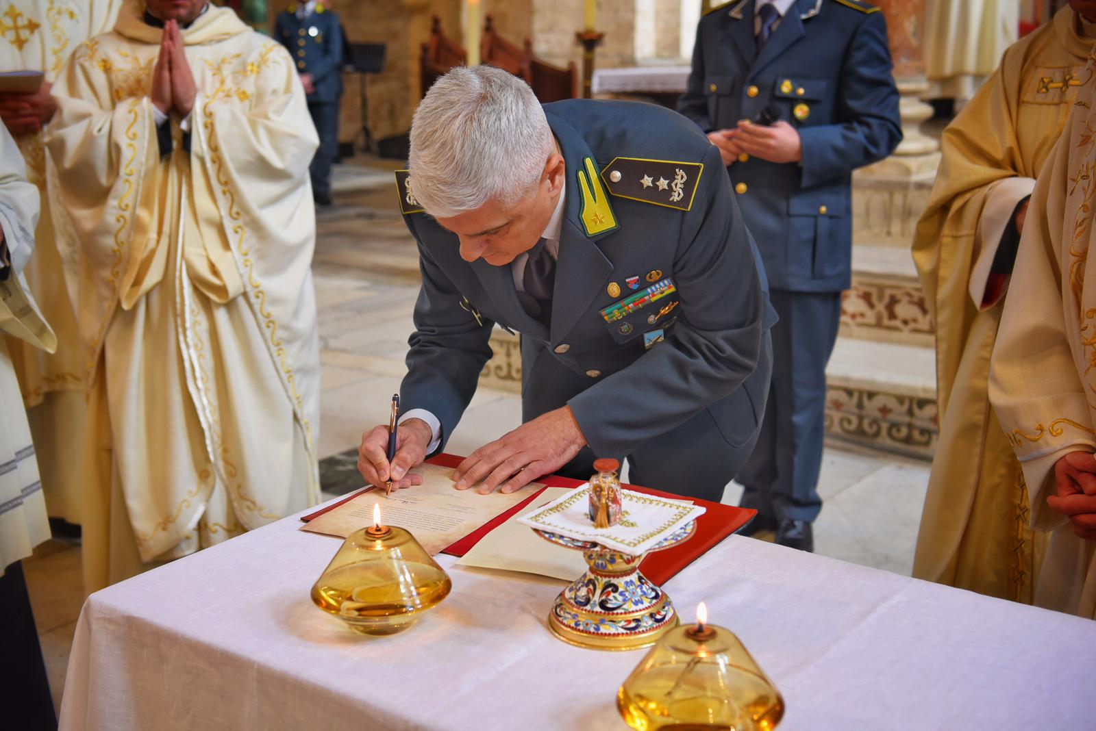 Il Rettore della Basilica, Padre Giovanni Distante, alla presenza del Comandante della Legione Allievi Finanzieri, Generale di Divisione Marco Lainati e al Colonnello Cosimo Lamanuzzi,