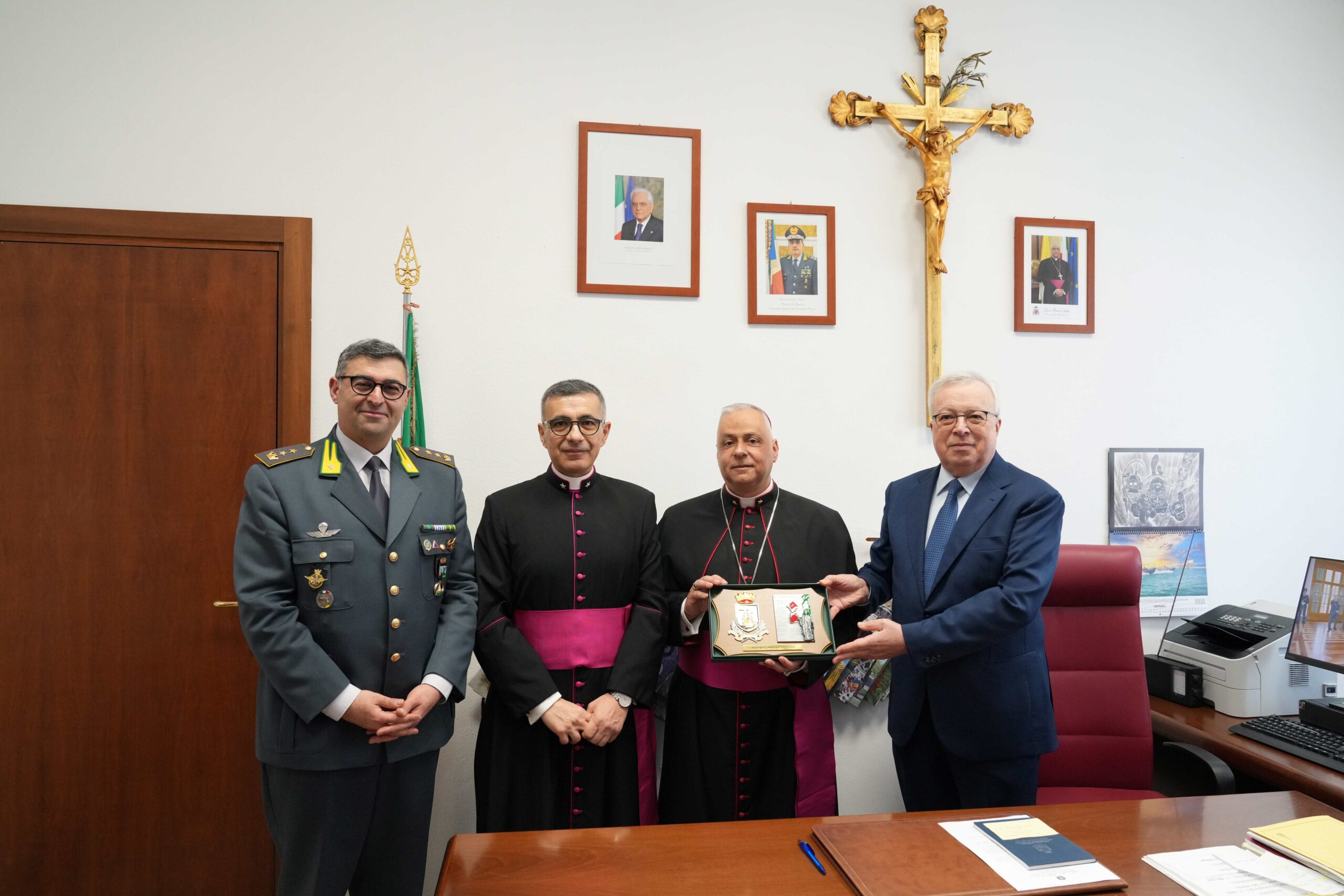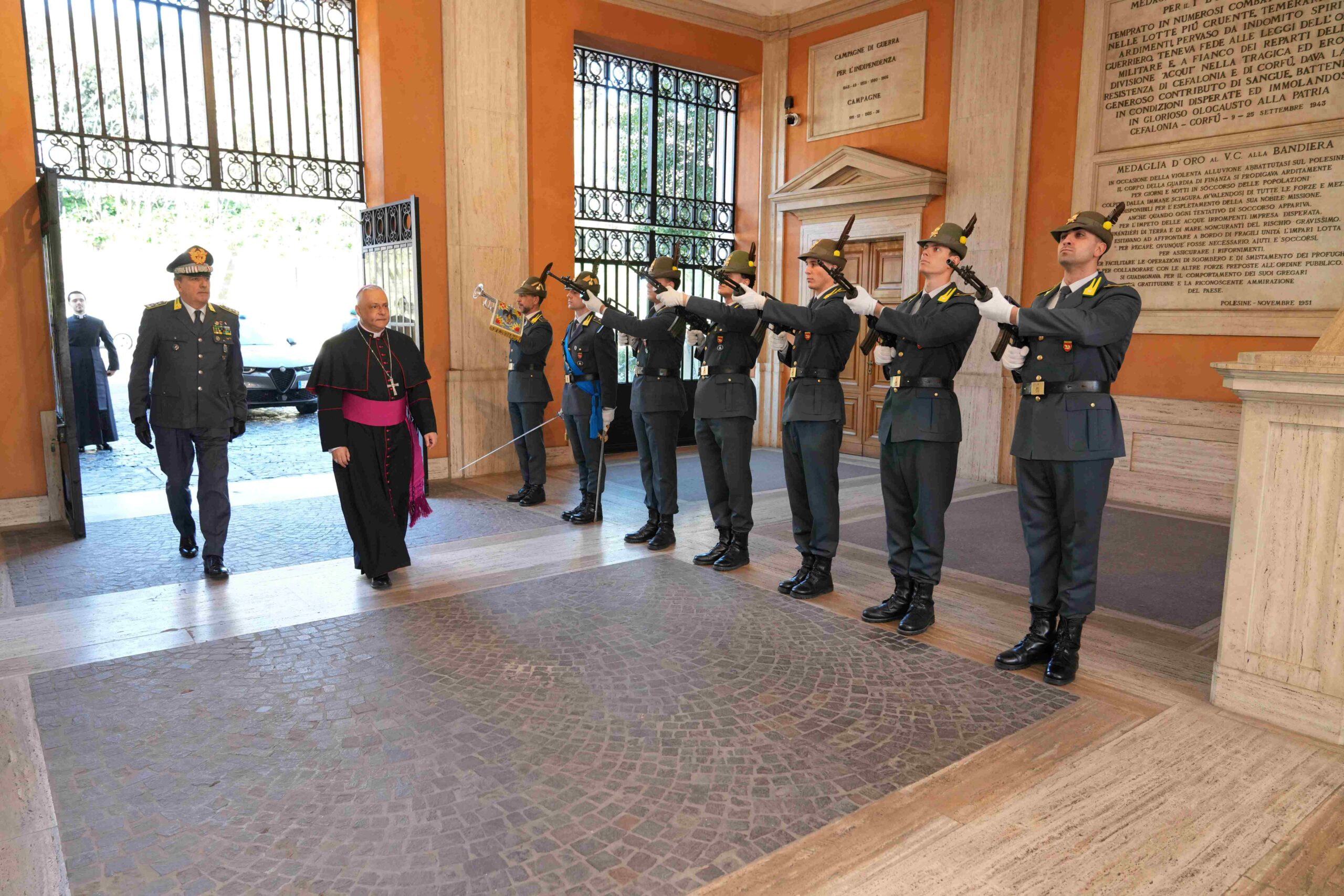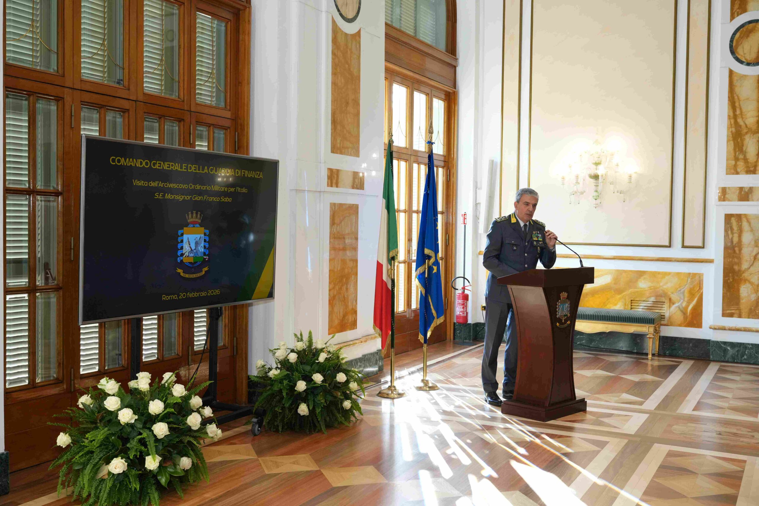 (20-02-2026) In data odierna, l’Arcivescovo Ordinario Militare per l’Italia, S.E. Rev.ma, Mons. Gian Franco Saba, si è recato in visita presso il Comando Generale. Nell’occasione, l’Autorità religiosa, accolta dal Comandante Generale, Gen. C.A. Andrea De Gennaro, ha assistito ad un briefing istituzionale, tenuto dal Capo di Stato Maggiore, Gen. D. Giuseppe Arbore, presso il Salone d’Onore “Col. t.ST Paolo Granata” della Caserma Piave, alla presenza di una rappresentanza degli Ufficiali dello Stato Maggiore e del Capo Servizio Assistenza Spirituale del Comando Generale, Mons. Nino Romano.