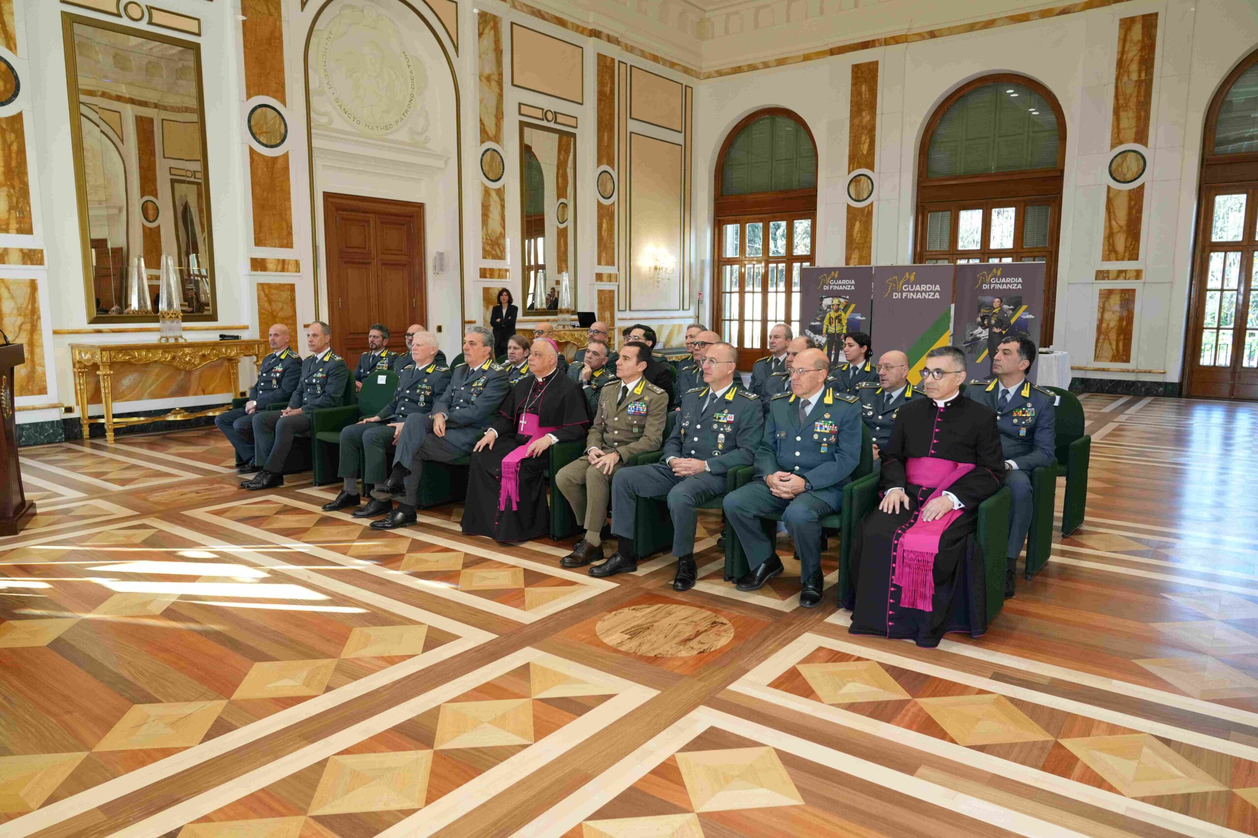 In particolare all’illustre ospite è stato mostrato il Breve pontificio del 10 aprile 1934, con il quale Papa Pio XI riconobbe l’Apostolo ed Evangelista San Matteo patrono del Corpo ed è stata ricordata la fulgida figura del Maresciallo Maggiore M.O.V.M. Vincenzo Giudice che il 16 settembre 1944 offrì la propria vita per salvare quella degli ostaggi catturati a Bergiola Foscalina (MS) come rappresaglia per la morte di un militare tedesco.