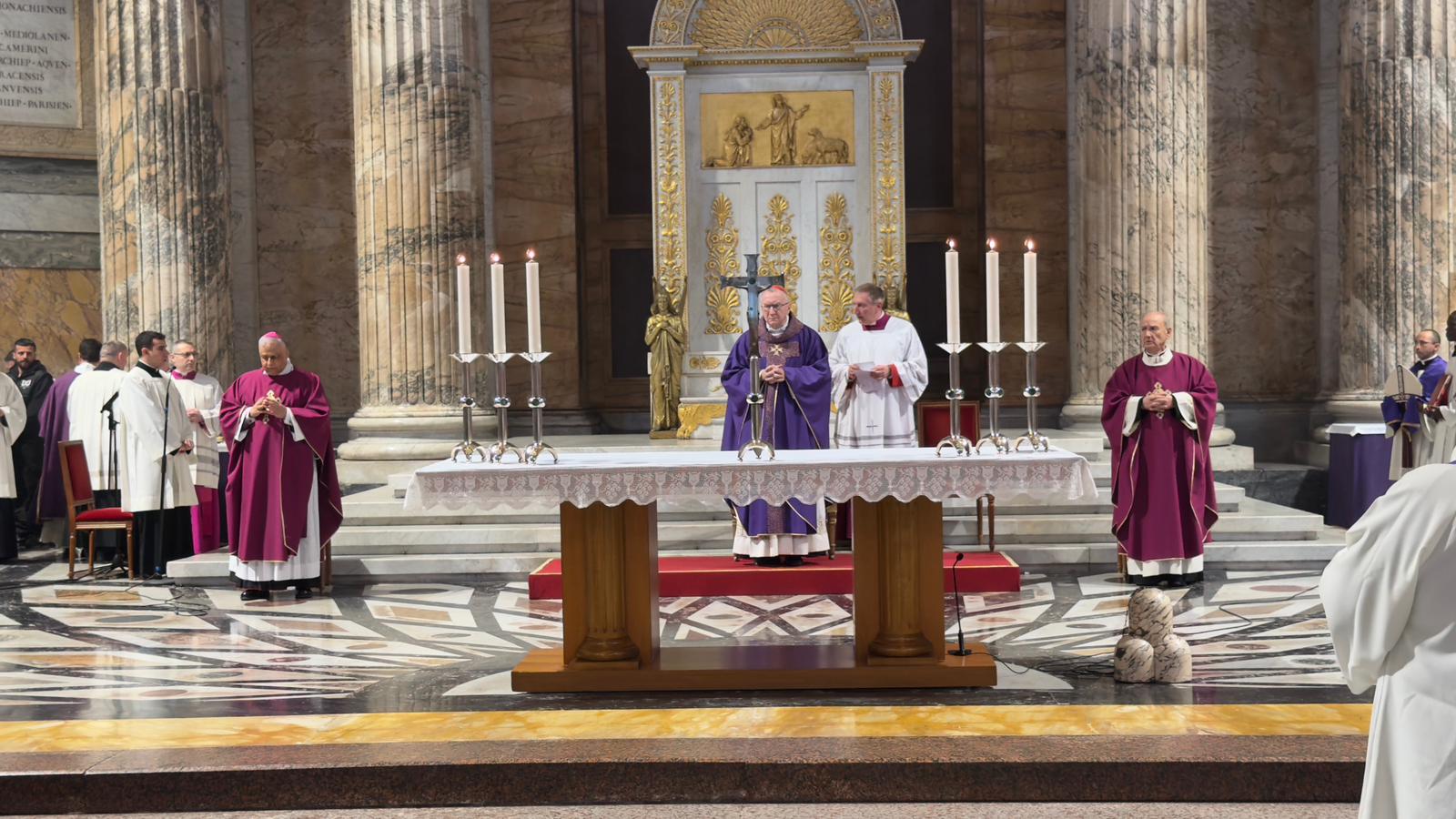 (03-03-2026) Nella Basilica di San Paolo fuori le Mura i cappellani si sono riuniti per segnare la prima tappa del loro pellegrinaggio. È questo lo spirito che S.E. Mons. Saba ha auspicato per tutto il presbiterio castrense. La Basilica, guardando all’Apostolo delle genti, sintetizza in modo eminente lo spirito e lo stile che devono caratterizzare l’identità e la pastorale del cappellano militare.