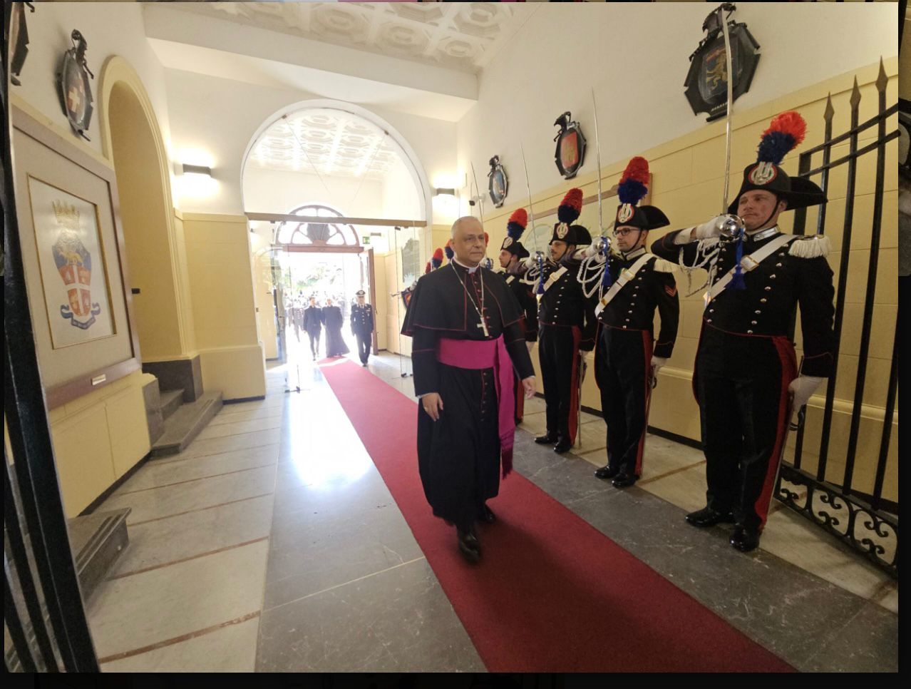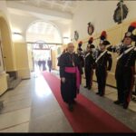 A conclusione della mattinata, l’Ordinario Militare ha fatto visita al Comando della Legione Carabinieri “Sicilia”, accolto da uno schieramento della Guardia d’Onore. Ad accompagnarlo, il Comandante della Legione, Generale di Divisione Ubaldo Del Monaco, insieme al Cappellano Don Salvatore Falzone.