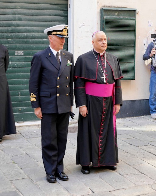 L’Ordinario Militare, al termine della Celebrazione, ha desiderato donare al comandante del Presidio militare di Genova, Ammiraglio Ispettore Antonio Ranieri, il Crest dell’Ordinariato Militare per l’Italia realizzato in occasione del Centenario dell’Istituzione. A sua volta, e a nome di tutti i militari ed appartenenti alle forze di polizia, l’Ammiraglio Ranieri ha consegnato all’Arcivescovo un’icona raffigurante il volto di Cristo in segno di gratitudine ed affetto.
