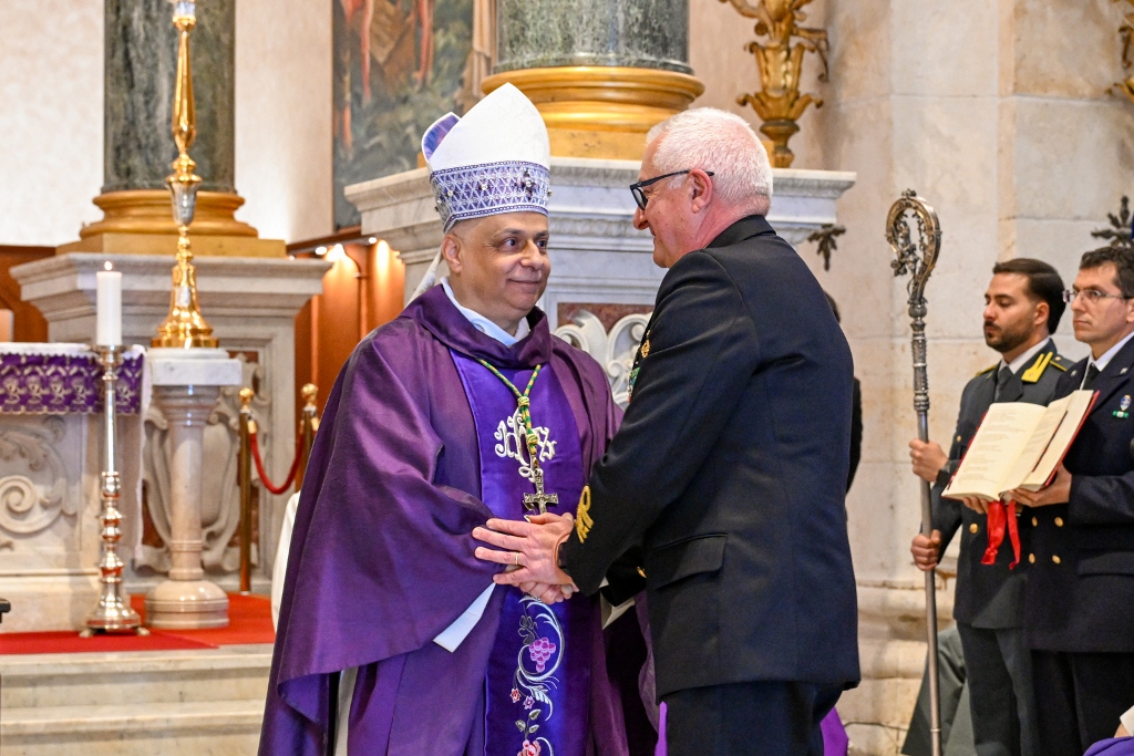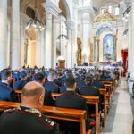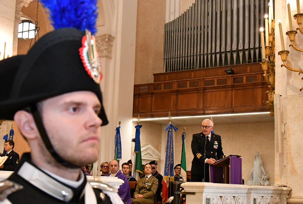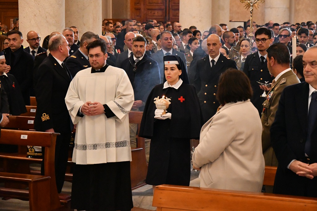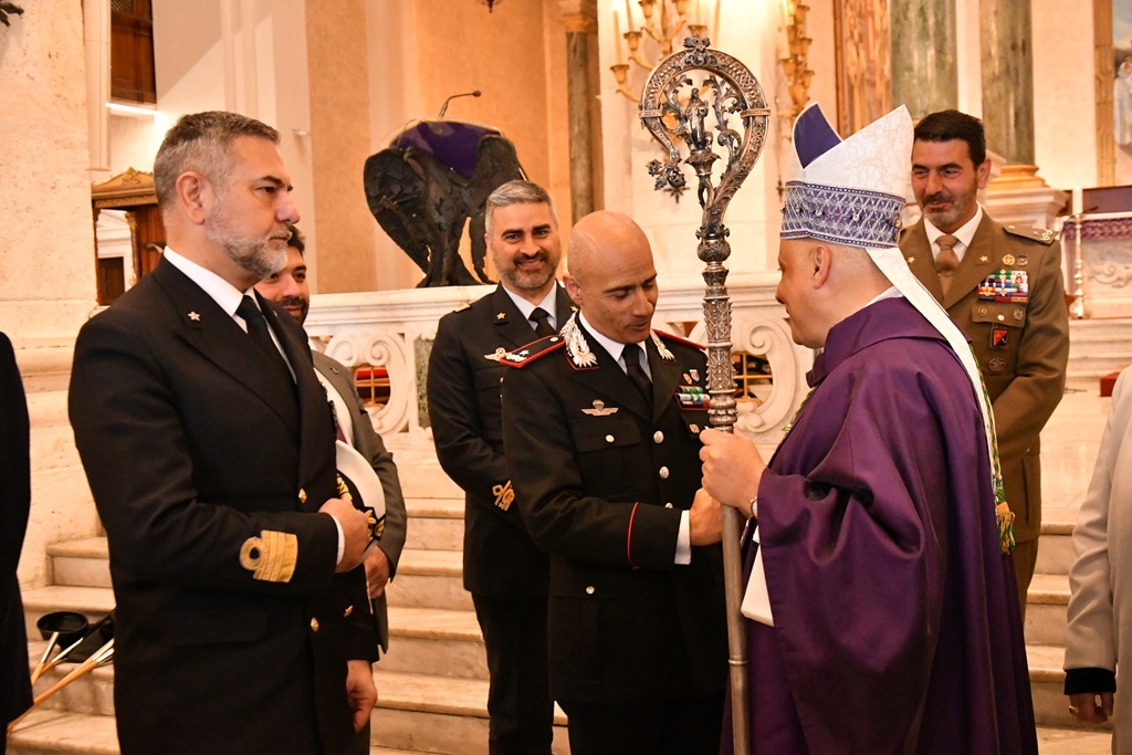 Infine, Mons. Saba ha indirizzato la preghiera nella speranza di nuovi percorsi di pace: “Vogliamo chiedere in questa eucaristia che, in questo momento difficile, si aprano strade nuove, … perché possiamo tutti cooperare verso un’umanità rinnovata. Ciascuno di voi e ciascuno di noi, porta un’uniforme, una divisa che non è un fatto esteriore, è una vocazione che diventa missione… nel servizio. E sapere che questa vocazione contribuisce a realizzare il progetto di Dio, a realizzare nell’unità, nella concordia e nella salvaguardia del diritto di ciascuno: essere quotidianamente, spesso nel silenzio, e nel nascondimento, servitori della comunità umana, di una comunità che non ha confini, che non pone distinzioni, ma che crea la cultura dell’incontro. In modo speciale vogliamo pregare con quanti qui sono presenti, anche segnati da lutti che hanno toccato i loro cuori a causa di conflitti e stragi insensate e… quanti in questo momento, innocenti, si trovano sotto il flagello dei missili della guerra, posti al centro in modo iniquo di scontri malvagi; preghiamo perché al centro possa essere riposta la concordia e la pace.