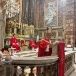(29-03-2026) Nella magnifica cornice della chiesa principale dell’Ordinariato, Santa Caterina a Magnanapoli, l’arcivescovo castrense Gian Franco Saba ha presieduto la messa delle Palme. Concelebranti il segretario particolare don Giovanni Tanca, il rettore don Pasquale Madeo, oltre a don Gianfranco Pilotto, don Giuseppe Praticò e don Rino De Paola, presenti pure i diaconi Salvatore Guarneri e Sebastiano Marrone.