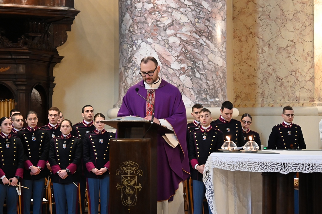 La celebrazione è stata animata dagli Allievi Ufficiali dell’Accademia Militare, mentre l’introduzione è stata affidata al decano e cappellano dell’Accademia, don Marco Falcone, che ha portato i saluti dell’Arcivescovo Ordinario Militare per l’Italia, Mons. Gian Franco Saba. Nel suo intervento ha inoltre ricordato come l’Ordinariato Militare stia vivendo «un anno di grazia», segnato dal centenario della sua fondazione, invitando a leggere questo tempo come occasione di rinnovamento spirituale per tutti i militari.