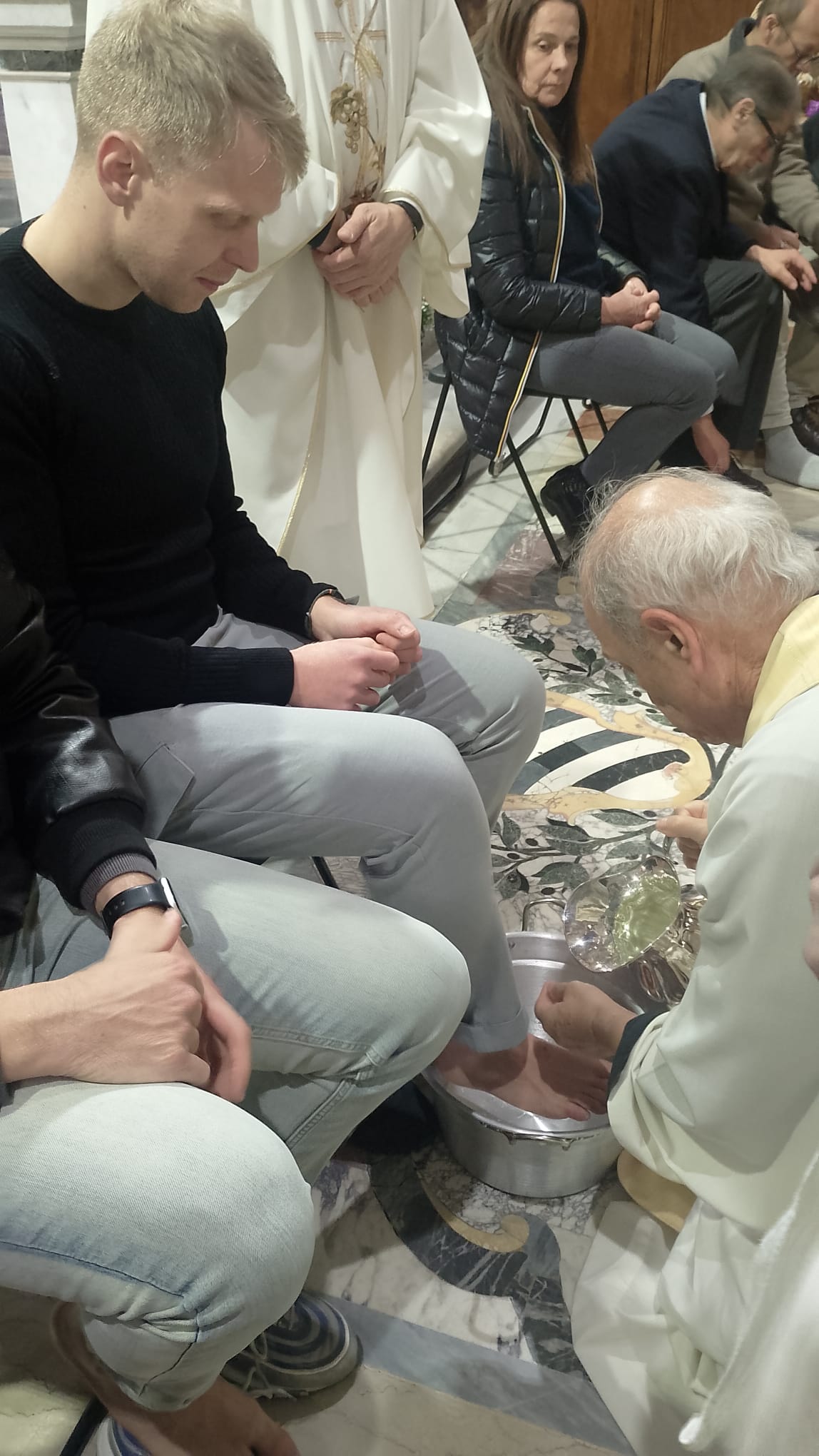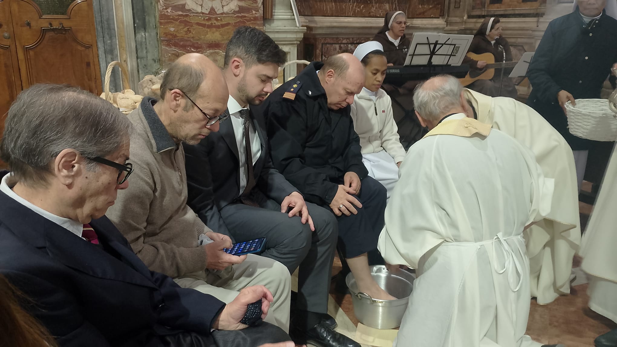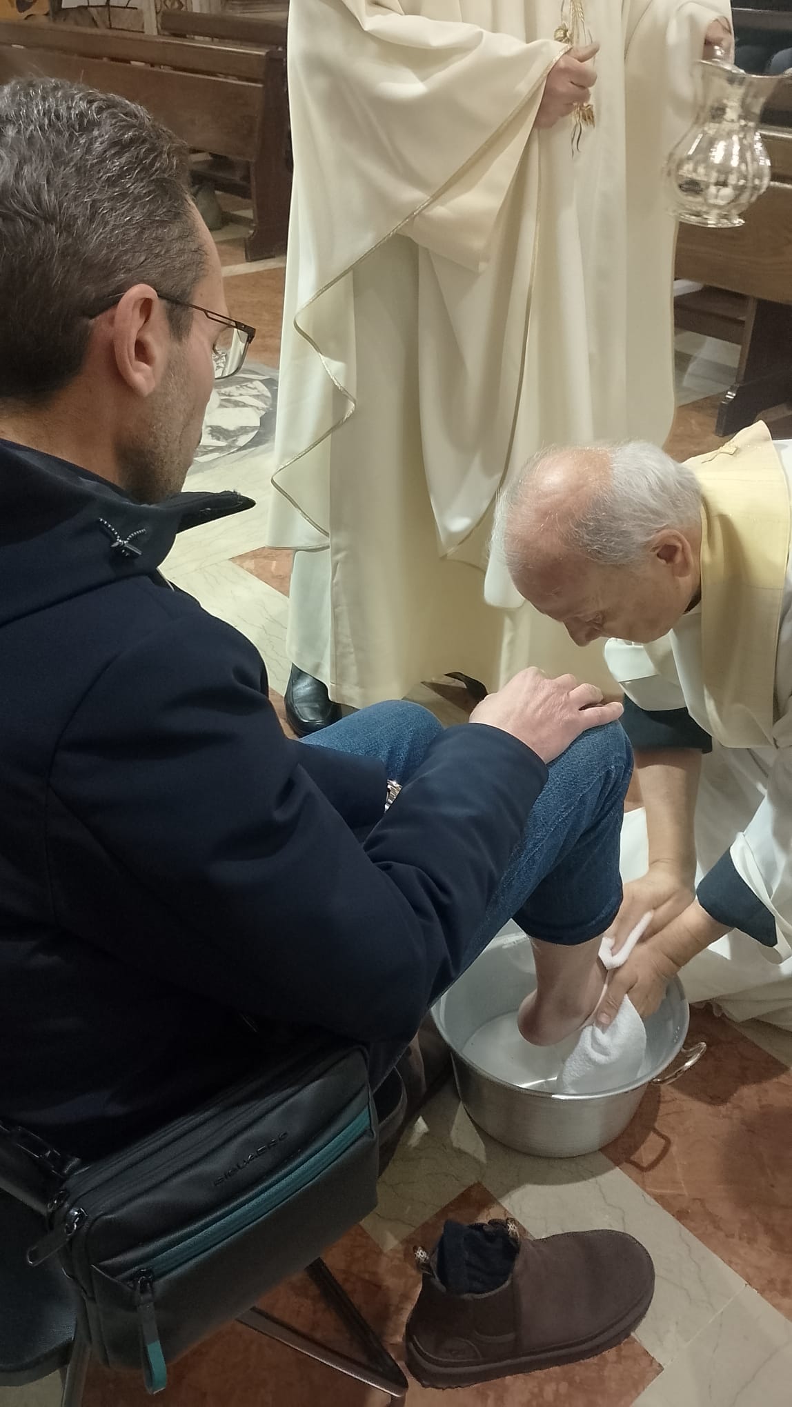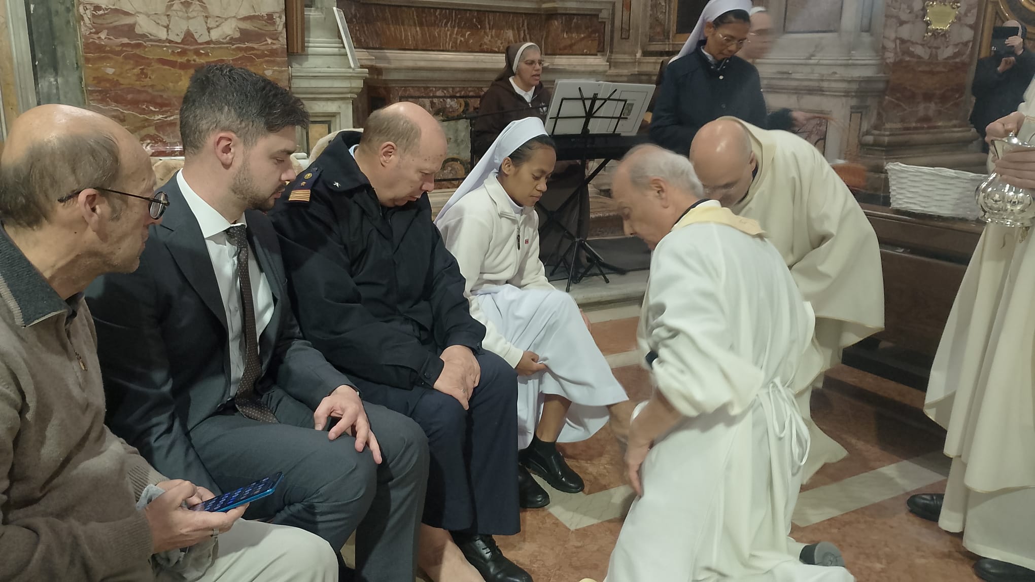 Sempre bella e suggestiva poi l’icona della lavanda dei piedi, cui tra gli altri ha preso parte il personale, militare e civile, dell’Ordinariato.