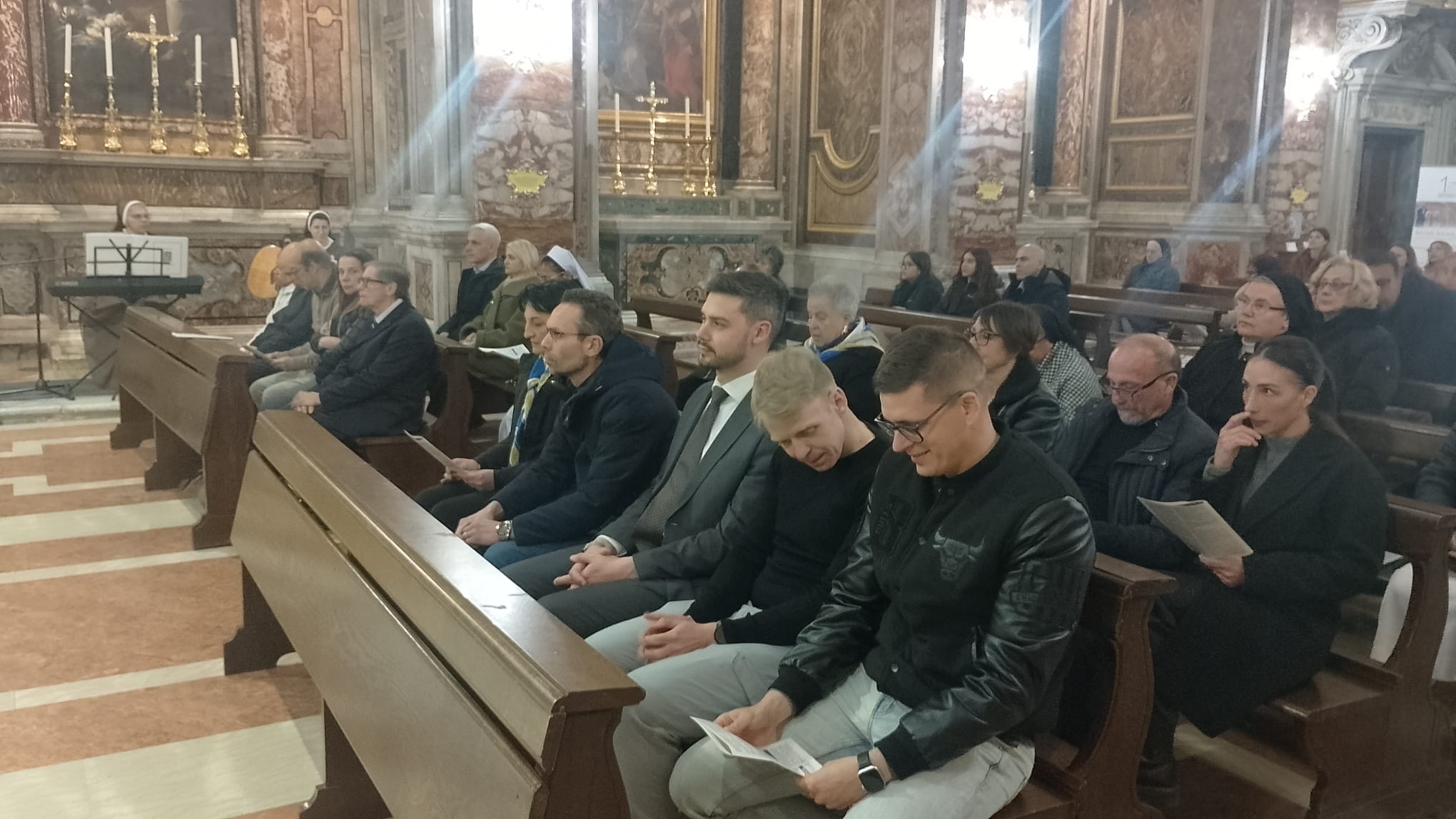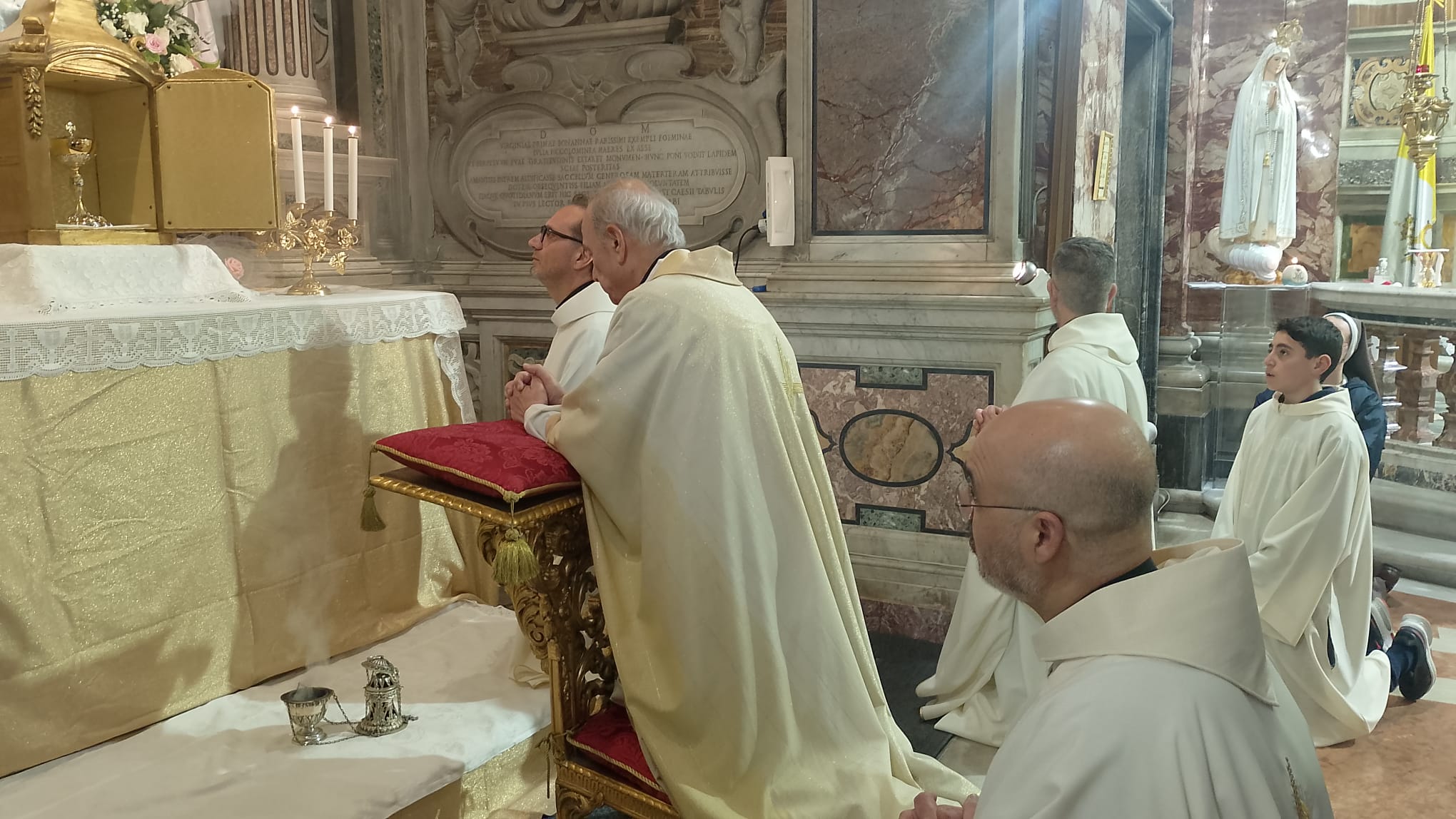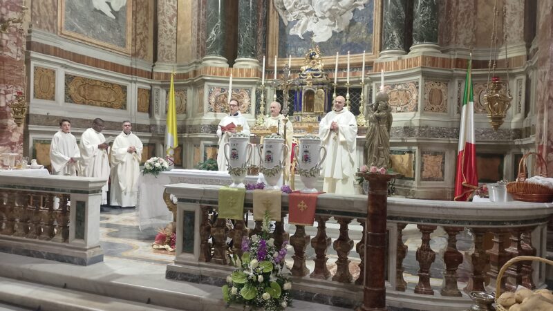 La liturgia, animata dalle Serve dei Cuori Trafitti di Gesù e Maria, è stata concelebrata dal rettore, don Pasquale Madeo e da don Donato Palminteri, don Giuseppe Balducci e don Tommaso Tiusuubira, presenti le suore che prestano il loro servizio in Ordinariato ed una rappresentanza del PASFA.