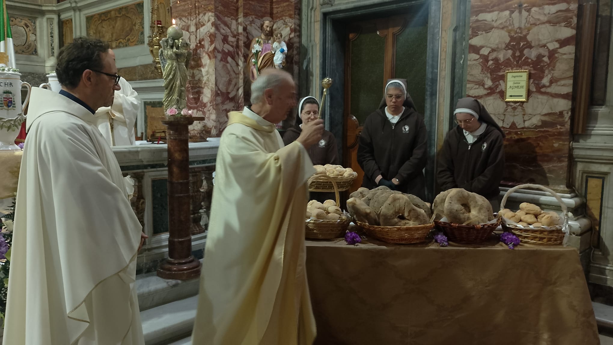 Alla fine la benedizione del pane e la distribuzione agli ‘apostoli’ e ai fedeli.