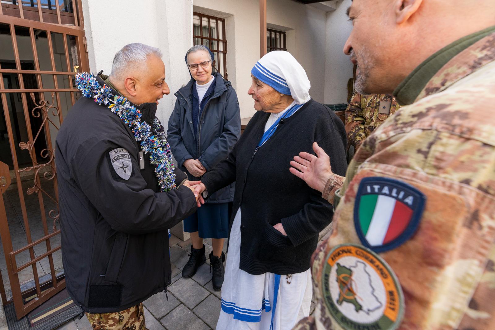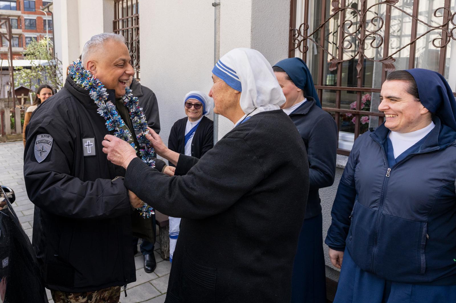 Ha avuto l’opportunità di incontrare le suore missionarie della Carità presenti a Pejë. Per le religiose, il cappellano militare celebra settimanalmente la Santa Messa in lingua inglese, in un clima di collaborazione fraterna che si estende anche alle attività di sostegno e assistenza alle famiglie in difficoltà del territorio.