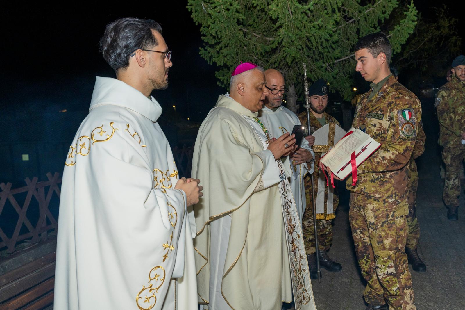 Come militari il Signore costituisce ancora di più come annunciatori dell’amore, non solo annunciatori ma custodi, perché voi toccate con mano spesso quanto quest’amore venga lacerato, quanto la violenza lo possa veramente annichilire. E allora servitori dell’amore di Dio, in ogni circostanza … tutti ministri di risurrezione, di vita nuova …