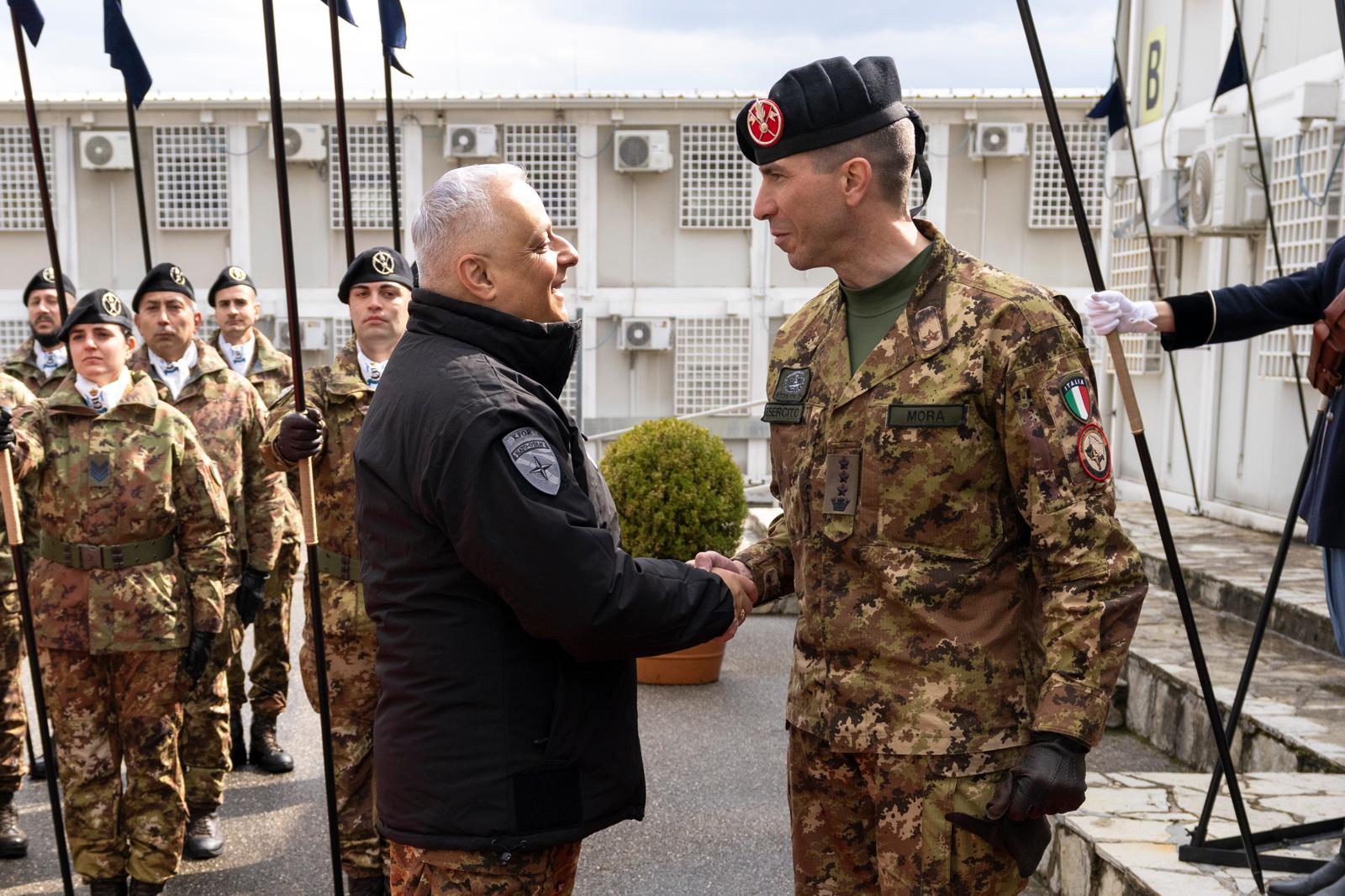 Accolto dal comandante, colonnello Federico Mora, e dal cappellano militare don Tollu, ha salutato tutto il personale italiano donando a ciascuno un rosario.