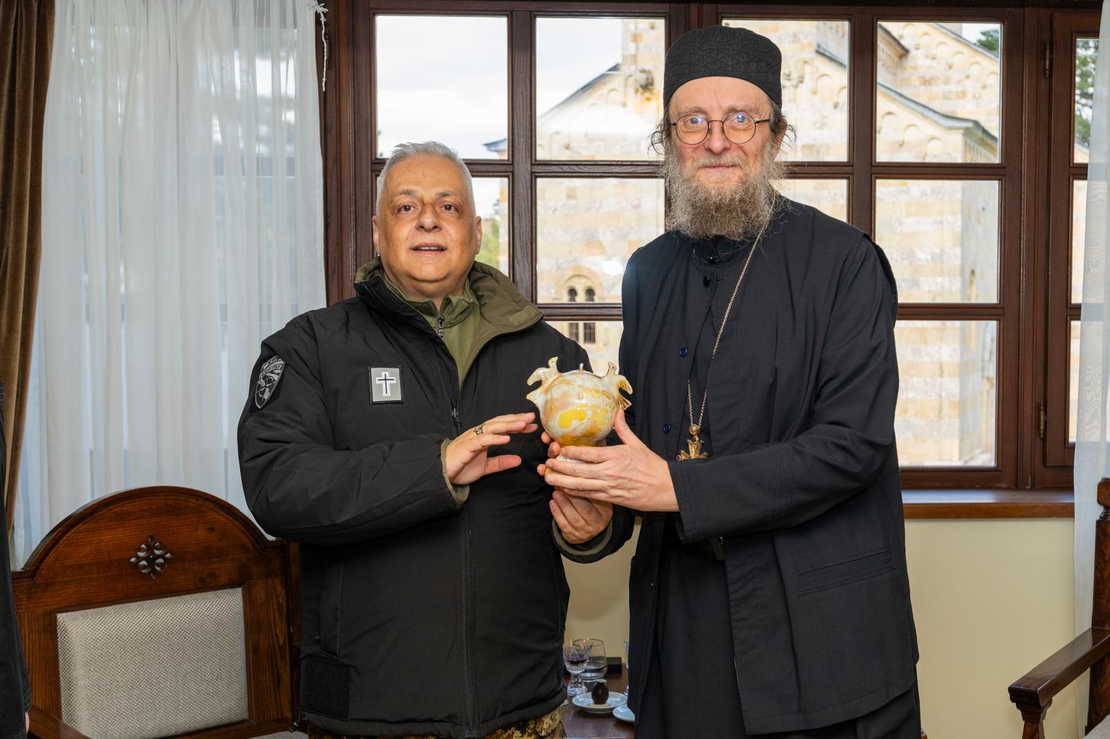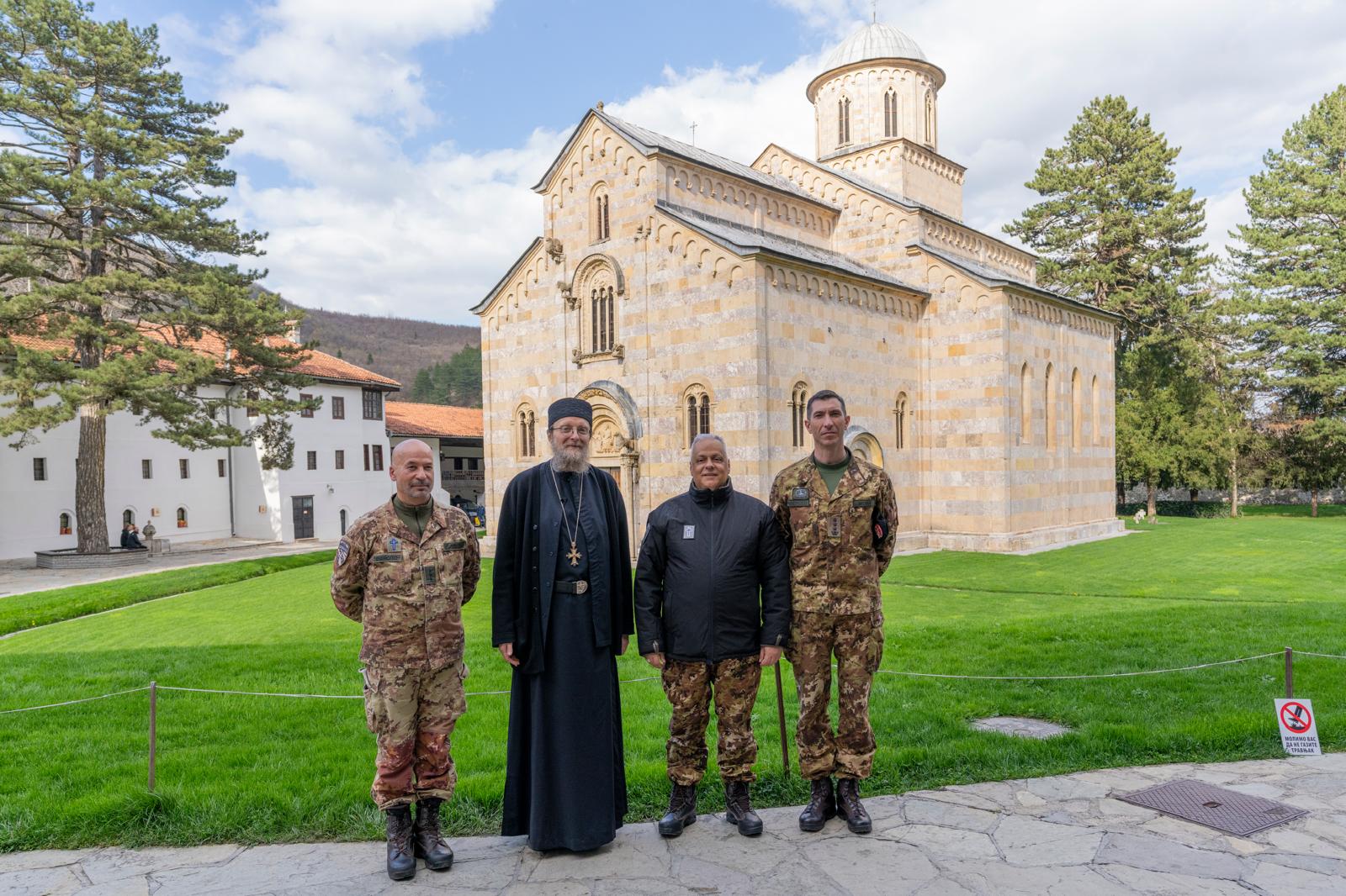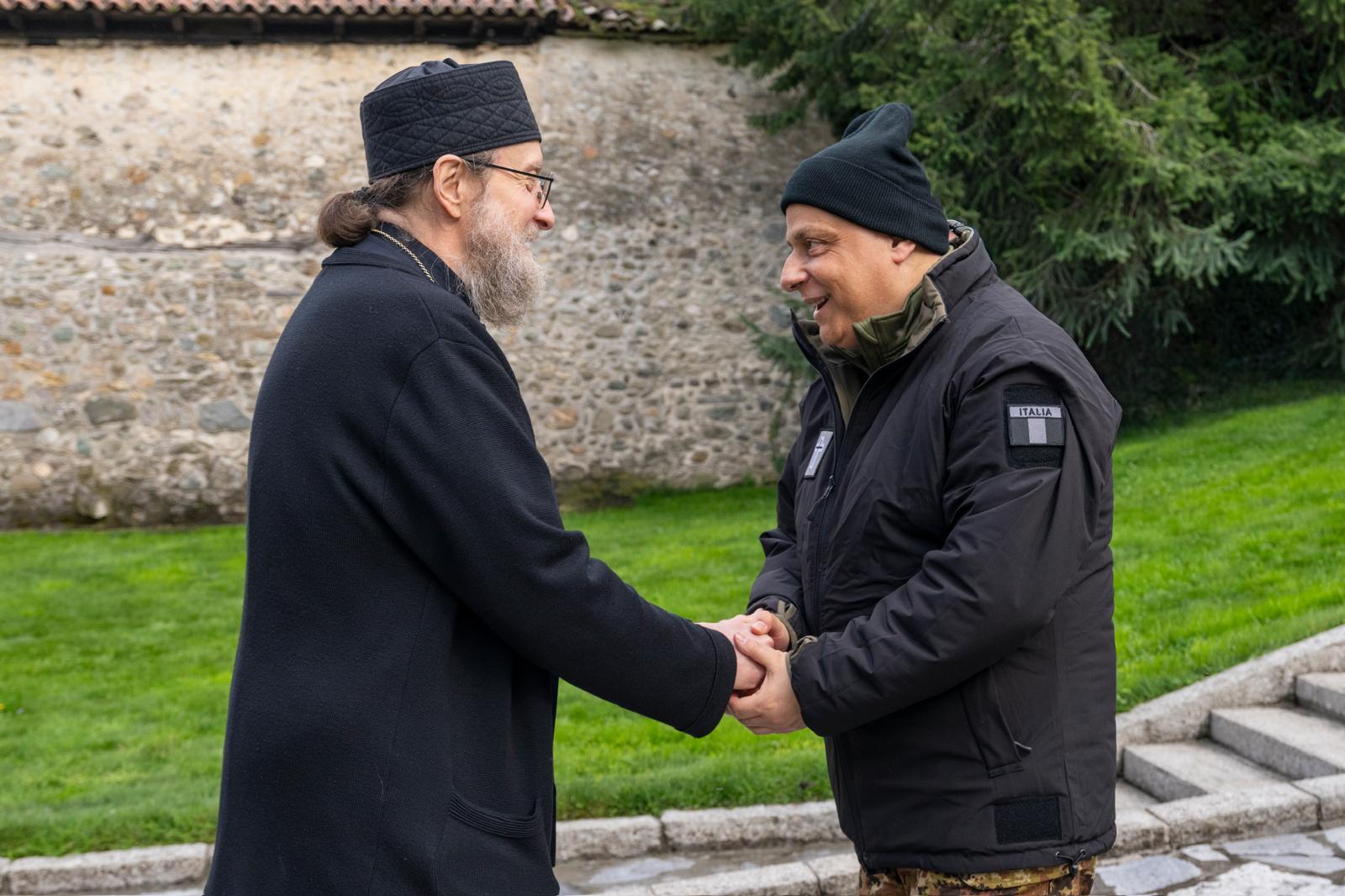 Nel corso della giornata, la delegazione ha visitato il monastero ortodosso di Monastero di Visoki Dečani, accompagnata dall’abate padre Sava e dal comandante del contingente. La visita ha offerto un momento di profonda riflessione spirituale: l’Ordinario si è soffermato ad ammirare i celebri affreschi del monastero e si è raccolto in preghiera davanti alle reliquie di Santo Stefano.