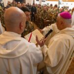 Nell’omelia l’Arcivescovo ha invitato a “mettersi davanti al Signore in un atteggiamento di abbandono, di fiducia … La pietra che copriva il sepolcro è stata rotolata via, per questo noi ci fidiamo. Ci fidiamo perché Dio ha agito. Chissà quante volte nella nostra vita abbiamo riscontrato l’azione di Dio, dalle cose più piccole alle cose più significative, oppure qualche volta non ci abbiamo neppure pensato che fosse Dio che ha orientato al bene le nostre situazioni … Bene, il Signore invece è presente nella nostra vita. L’annuncio di Pasqua sostanzialmente è questo … Oggi così, con spirito davvero di famiglia noi celebriamo la Pasqua. Sono lieto di poterla condividere con tutti e ciascuno di voi, perché la famiglia della Chiesa dell’Ordinariato militare si ritrova insieme non per celebrare realtà umane, ma per celebrare l’amore di Dio nella nostra esistenza … E Papa Leone ci ha ricordato che la preghiera di chi promuove la guerra non può essere ascoltata da Dio. Ma la preghiera di chi promuove la pace, la difende, la custodisce anche col sacrificio personale, questa è ascoltata da Dio. Questa è benedetta da Dio. Quindi è un discepolato a servizio del Signore, quello che è riposto nelle vostre e nelle nostre mani.