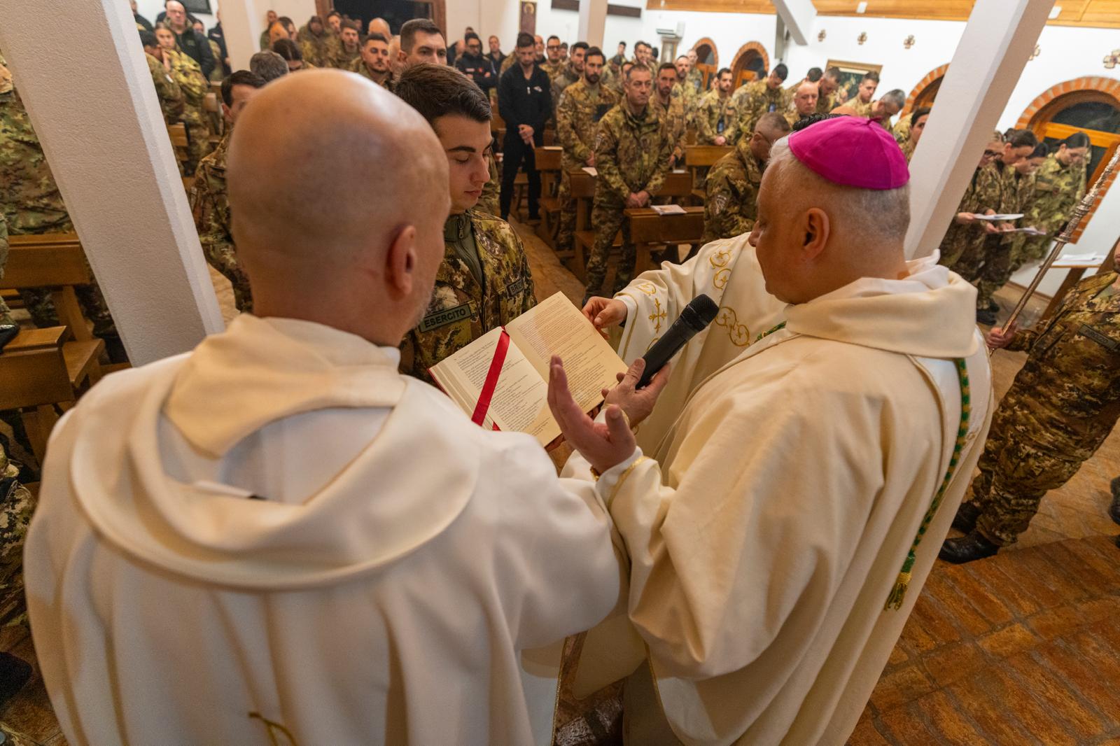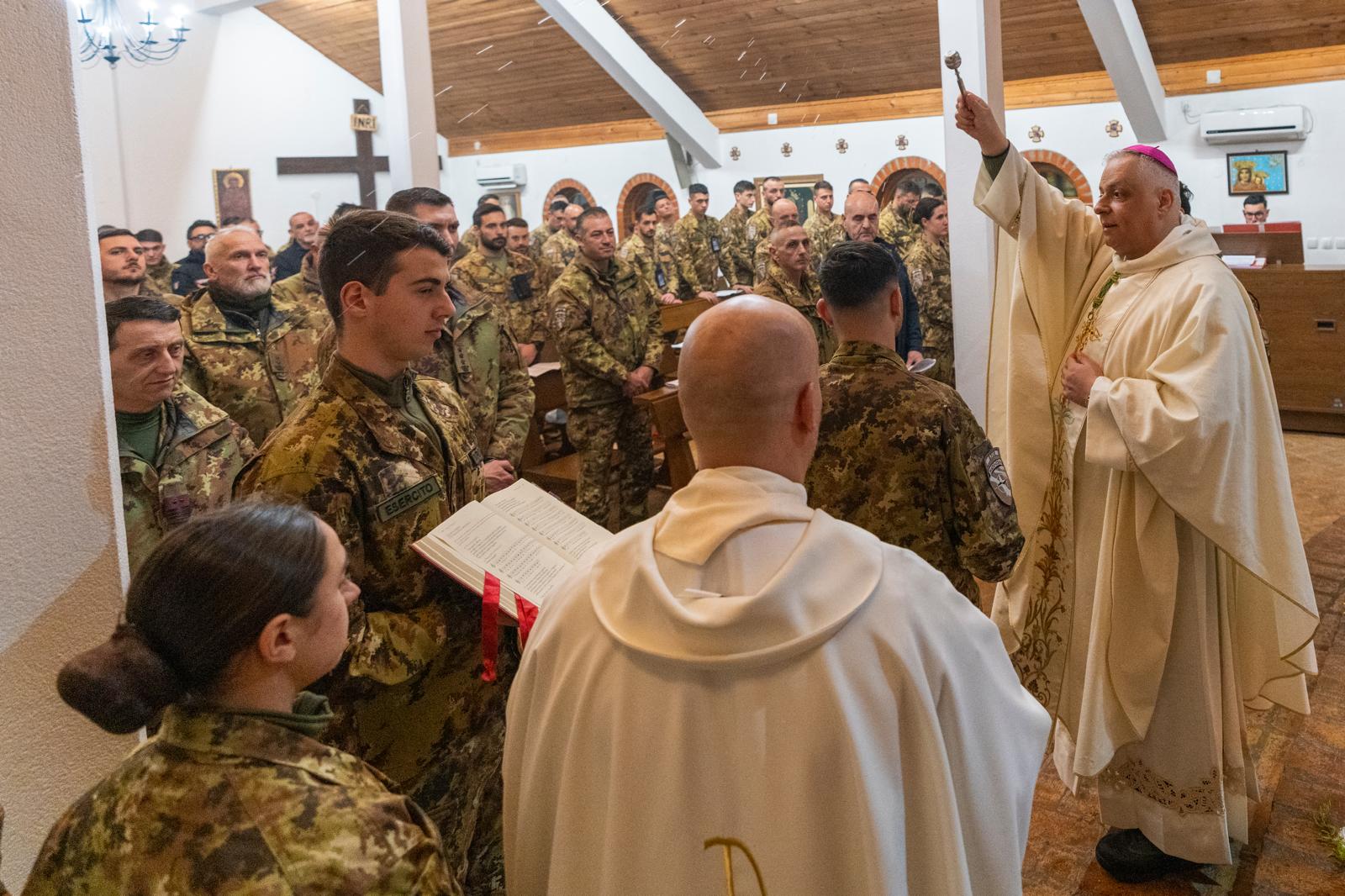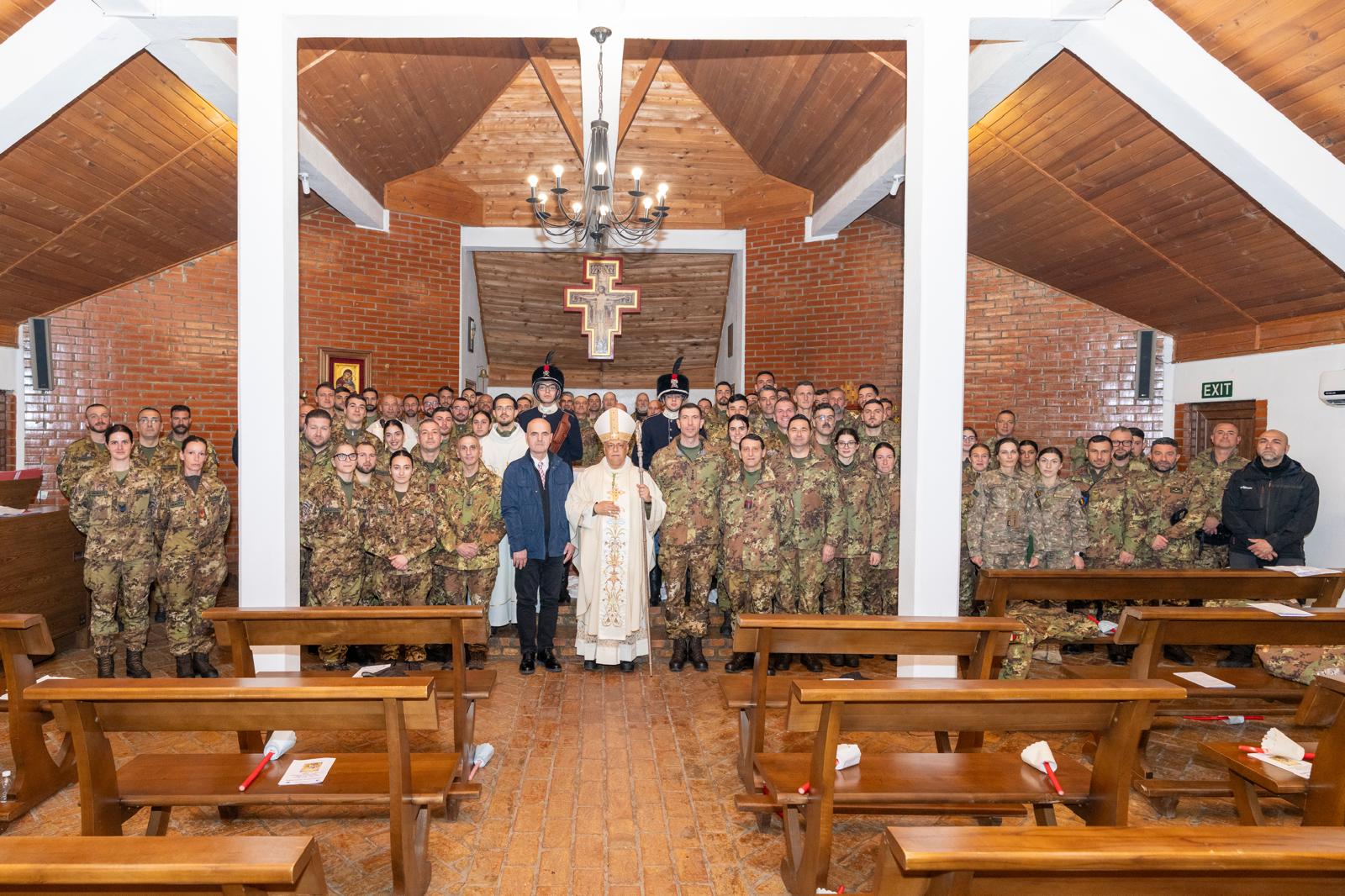 (06-04-2026) Sabato Santo S.E. Mons. Gian Franco Saba, accompagnato dal suo segretario don Giovanni Tanca, dopo i primi due giorni del triduo a Pristina (vedi le news precedenti) ha compiuto la visita pastorale al contingente italiano presso il Campo “Villaggio Italia” di Pejë.