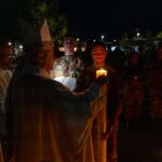 Così l’Ordinario nell’omelia: “questa sera celebriamo insieme l’Eucaristia, vegliando per annunciare che Gesù è veramente risorto. E’ questo il primo motivo del nostro incontro e lo annunciamo al mondo intero, Gesù è veramente risorto, la risurrezione di Gesù, come abbiamo potuto ascoltare nella preghiera, è motivo di esultanza, esulti il mondo intero, esulti la Madre Chiesa. L’esultanza forse in questo momento non è la musica di tutto il mondo, anzi vi è il dolore, vi è il pianto, vi è la sofferenza, dettato dall’oscurità del male, della guerra, della violenza e delle contrapposizioni.