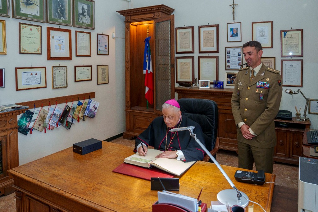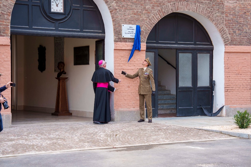 La visita è proseguita con la cerimonia di intitolazione dei cortili interni della caserma. L’Arcivescovo ha svelato la targa dedicata a Santa Barbara, martire cristiana e Patrona dell’Arma del Genio, dell’Artiglieria, della Marina Militare, dei Vigili del Fuoco e di quanti operano in contesti ad alto rischio.