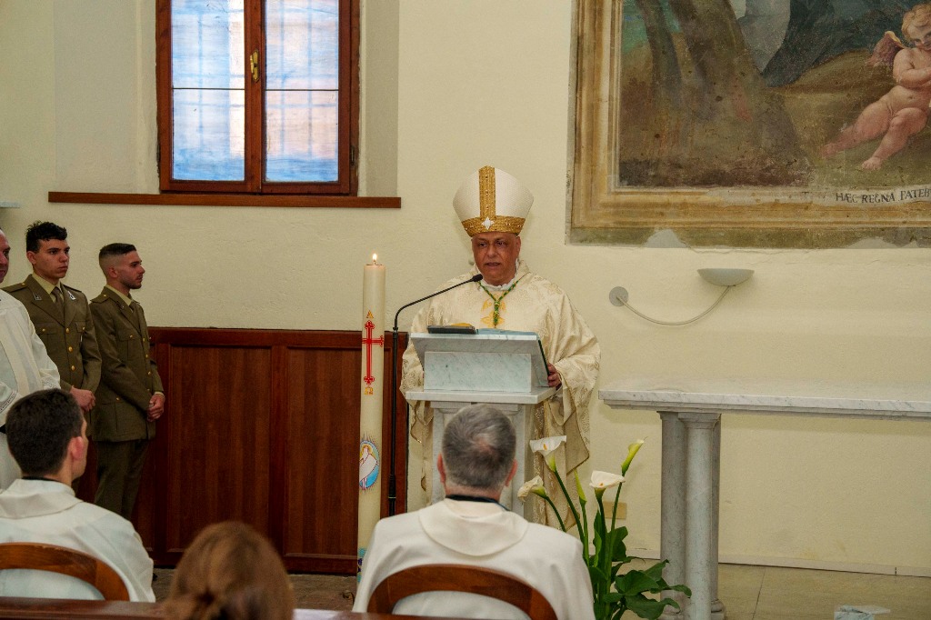 Dopo essere stato accolto dal Comandante del Reparto, Colonnello Daniele Paradiso, e dal 1° Cappellano Militare Capo, don Massimo Gelmi, Monsignor Saba ha presieduto la cerimonia di consacrazione della cappella di Reggimento, durante la quale sono state deposte, sotto l’altare, le reliquie di San Giovanni XXIII, Santo Patrono dell’Esercito Italiano e di San Giovanni Battista Scalabrini, Vescovo di Piacenza e fondatore della Congregazione dei Missionari di San Carlo.