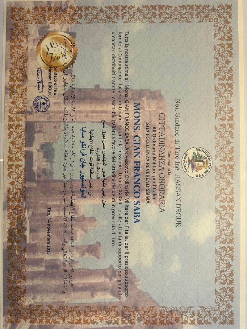 (24-11-2025) Presso l’Ordinariato Militare per l’Italia si è svolto un incontro di elevato spessore umano e spirituale. Sua Eccellenza Reverendissima Mons. Gianfranco Saba, Ordinario Militare per l’Italia, ha ricevuto Filomena Di Gennaro, già Allievo Maresciallo dell’Arma dei Carabinieri e testimone diretta di un grave tentativo di femminicidio. Ad accompagnarla erano presenti la psicologa Prof.ssa Laura Seragusa, il Ten. Col. Bonadonna Giuseppe dell’Arma dei Carabinieri e … Continua a leggere Mons. Saba incontra Filomena Di Gennaro: “una testimonianza che diventa itinerario educativo e azione pastorale”